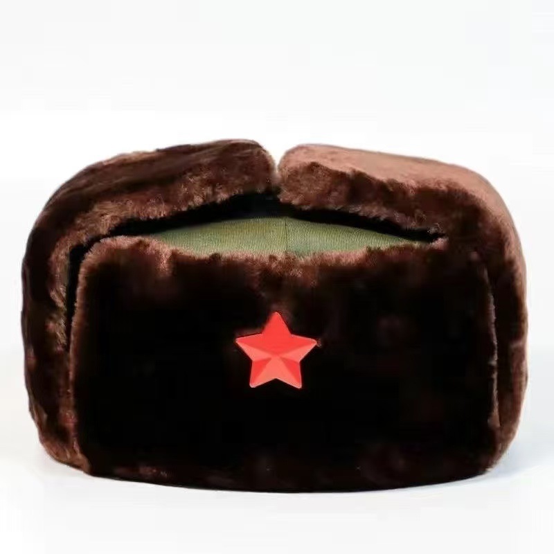 五角星苏联徽章男女冬季户外骑车保暖护耳防寒加厚雷锋帽麦穗红色