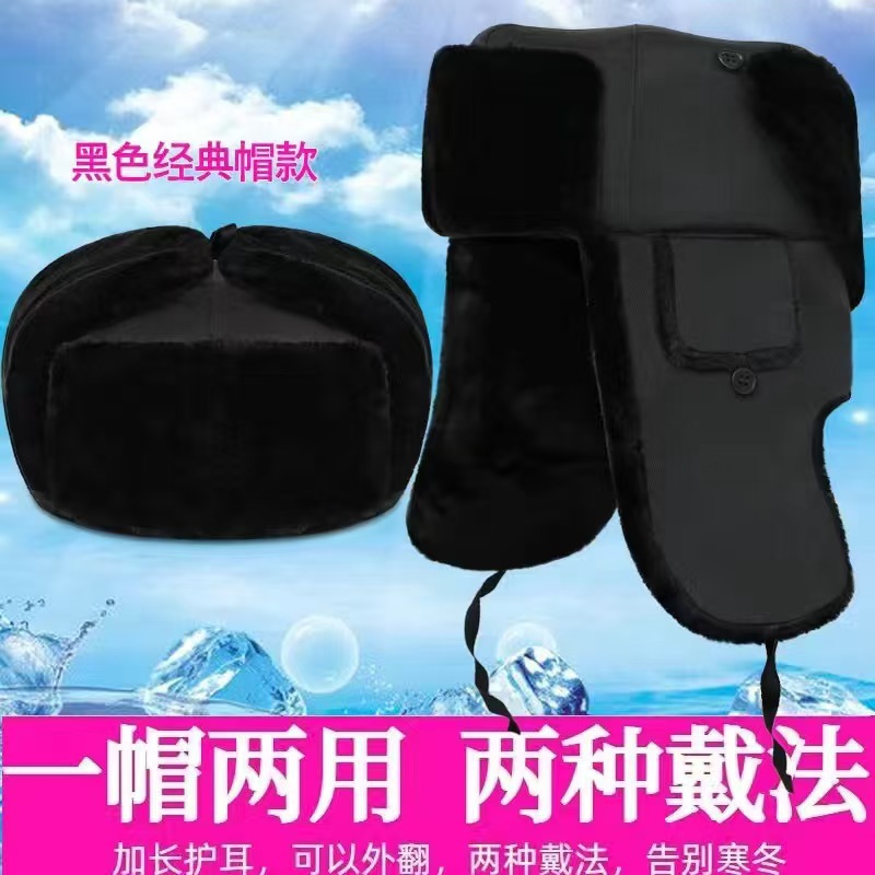 秋冬季新款护耳帽子男士冬天加厚加绒雷锋帽户外骑行口罩帽子防寒