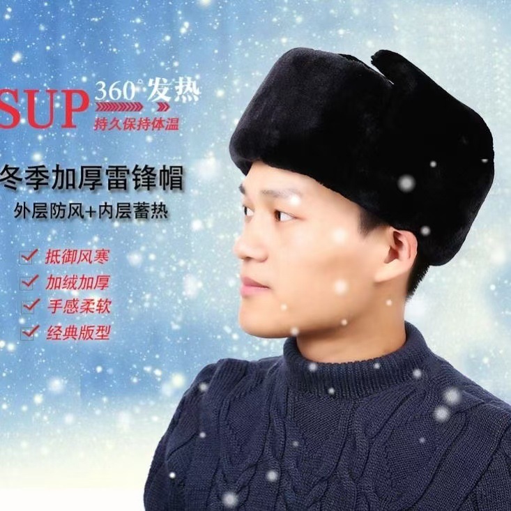 雷鋒帽とベルベットの厚い保温帽雪地帽警備勤務老人綿帽子男性用冬の屋外防寒