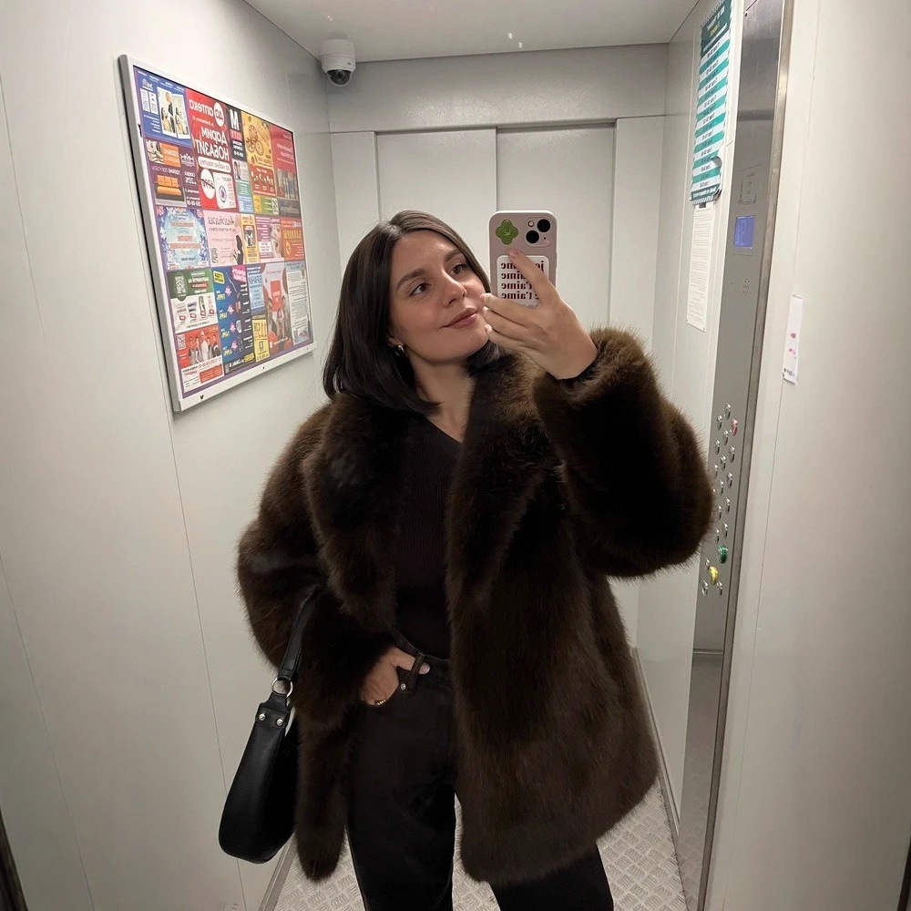 2025年 ラージラペル フェイクファーコート レディース エレガント ロングスリーブ 保温コート ファーコート 欧米風