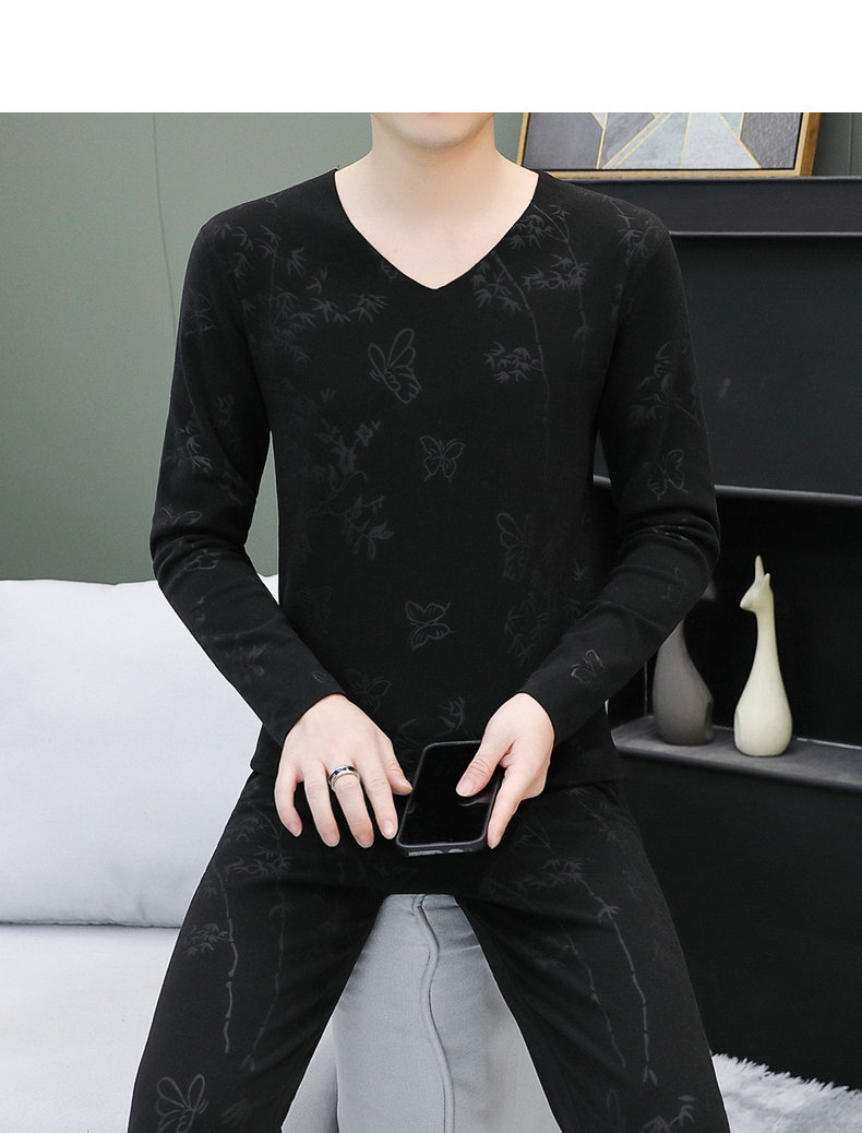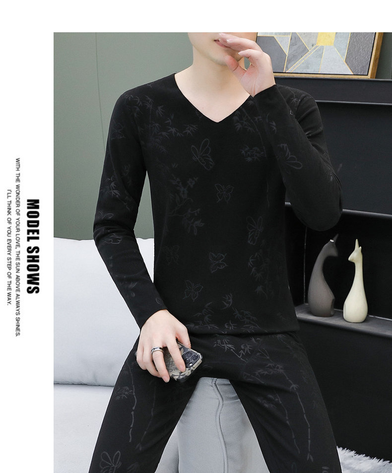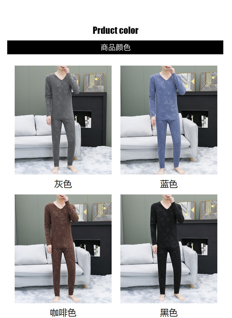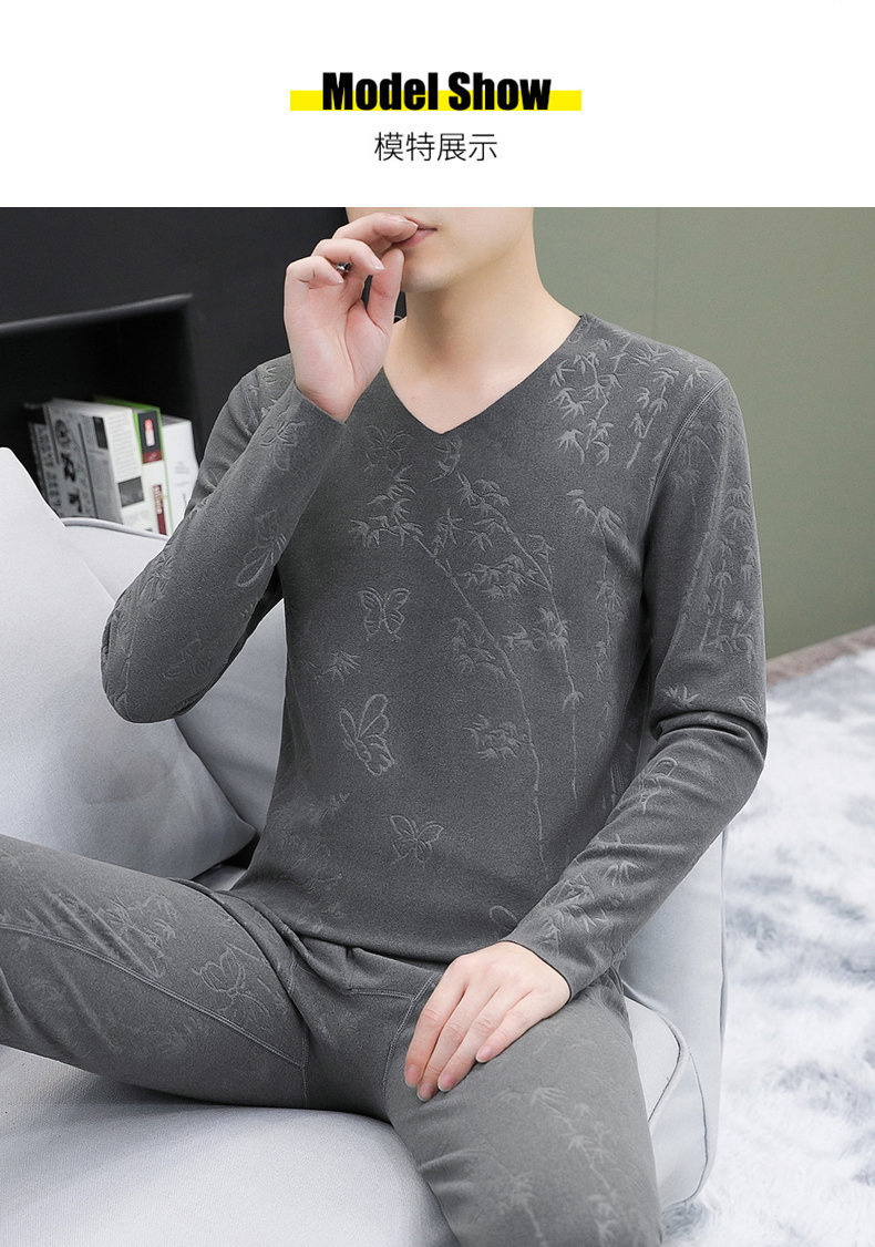 男性の保温下着の徳絨無痕vネックの肌着発熱ボトムシャツの男性タイプの青年秋衣秋ズボンセット