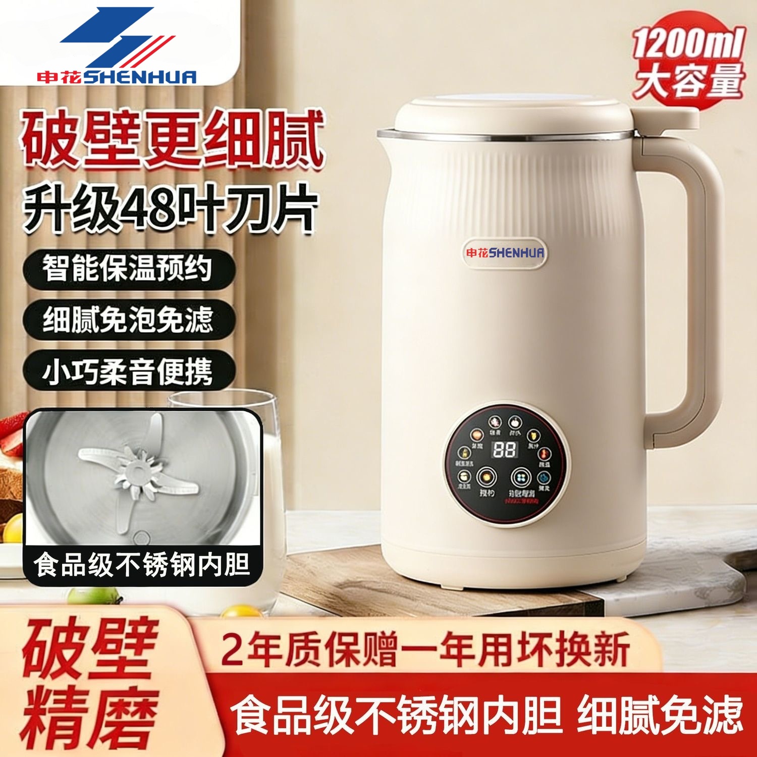 申花破壁机家用豆浆机全自动静音多功能免过滤免煮榨汁一体机