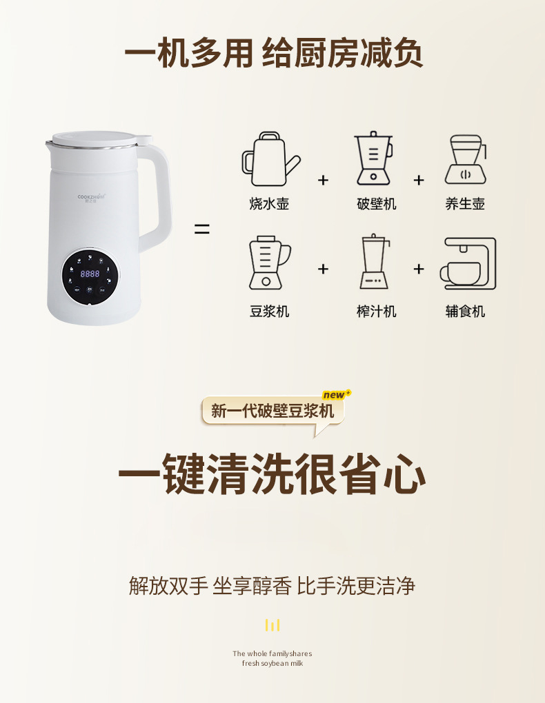 批发豆浆机多种功能小型全自动破壁机家用免过滤便携式豆浆机