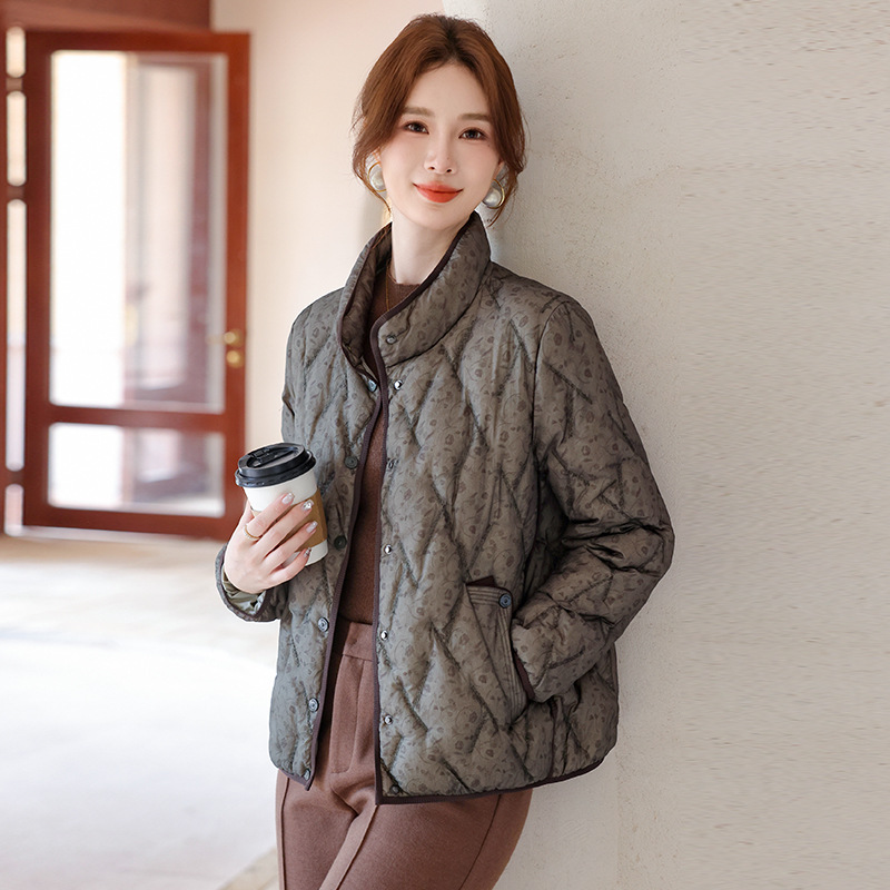 2024中高年ダウンジャケット短い秋冬上着ママコート綿服刺繍洋気90白鴨パイル