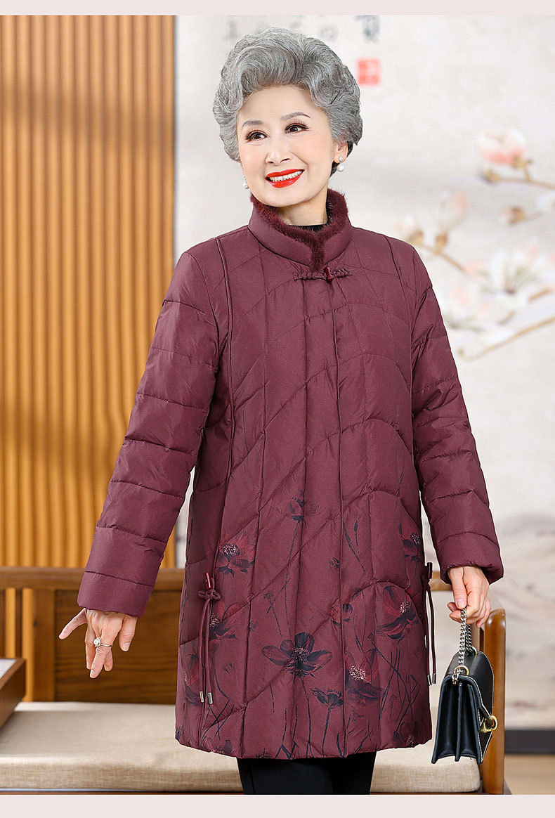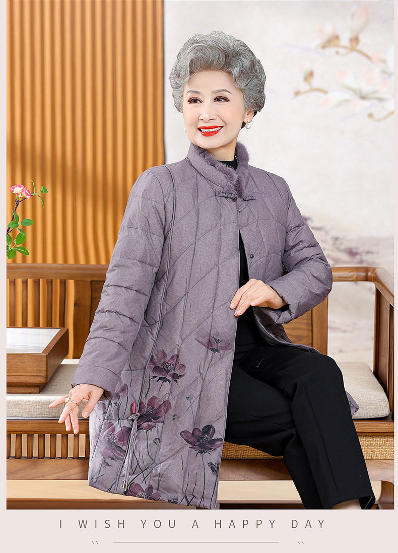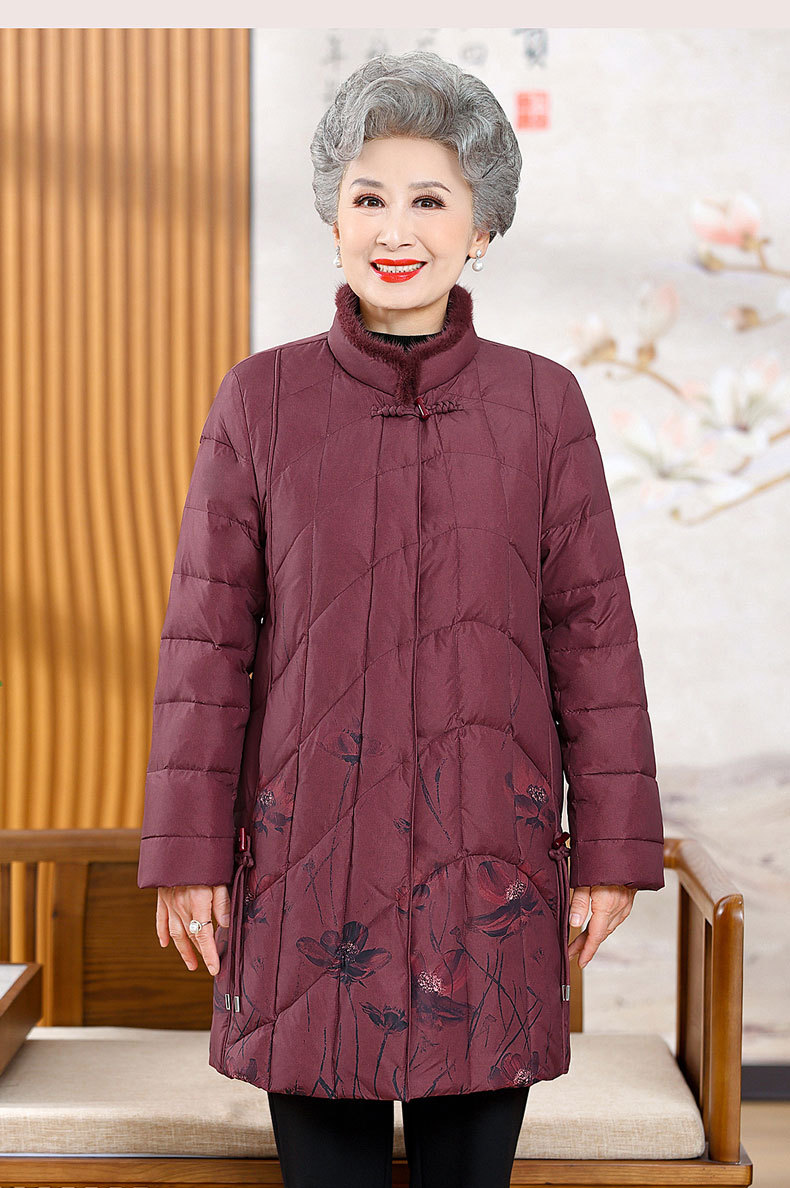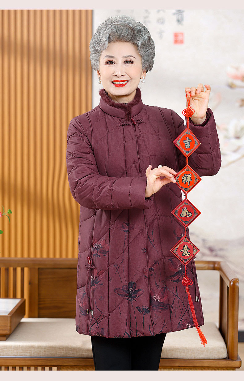 2024高齢者冬服女性おばあちゃん民族風90ベルベットダウンジャケット気質コート母冬綿入れ