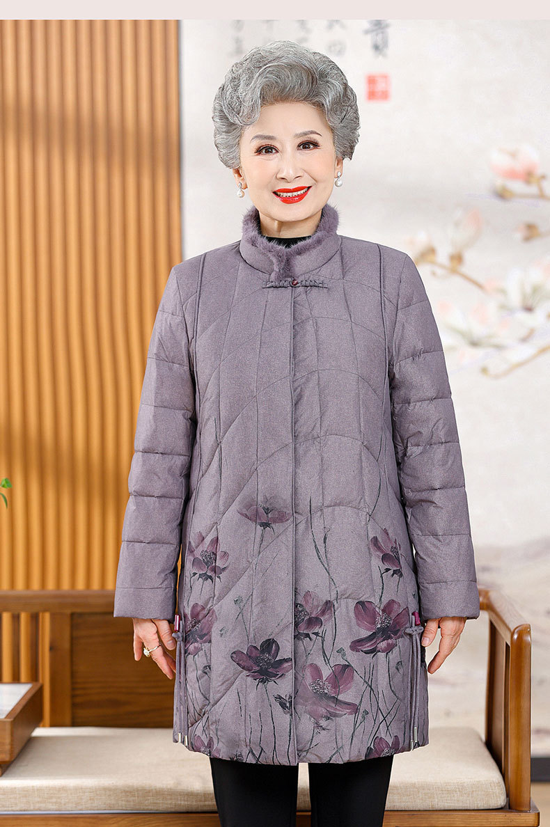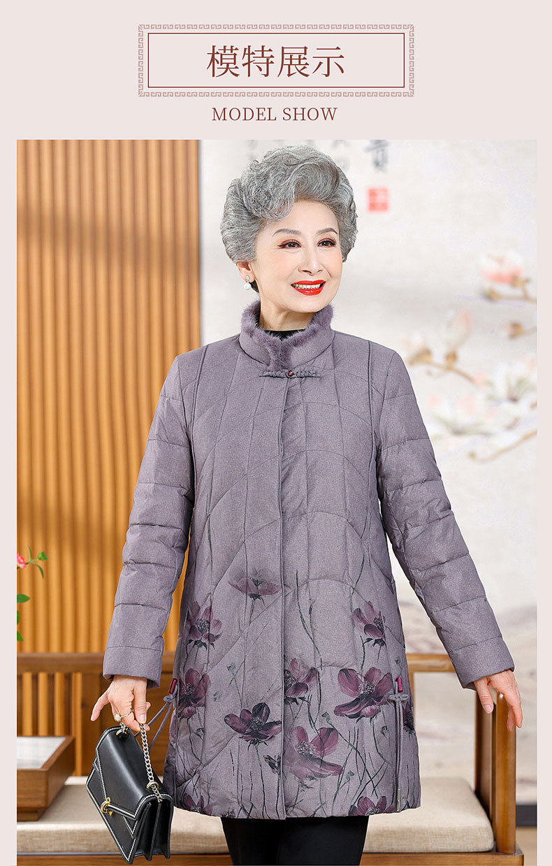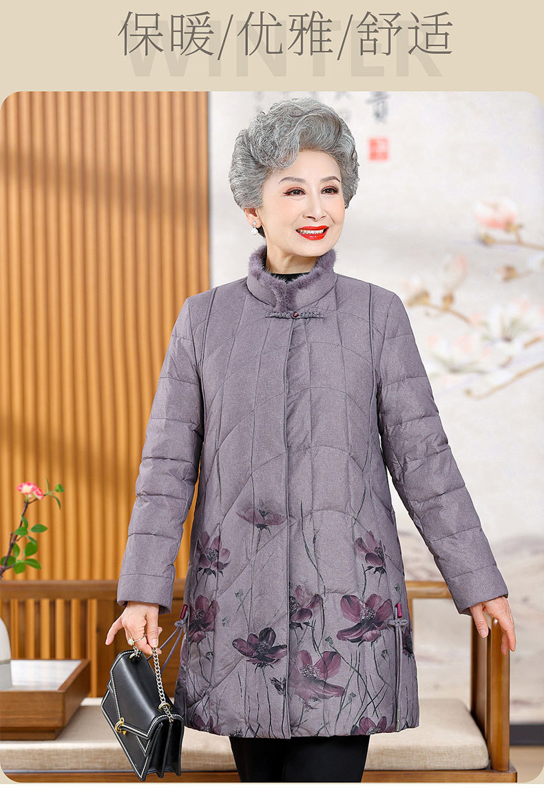 90絨毛白鴨絨毛母ダウンジャケットミンク毛襟気質中高年母装祖母秋冬コート綿入れ
