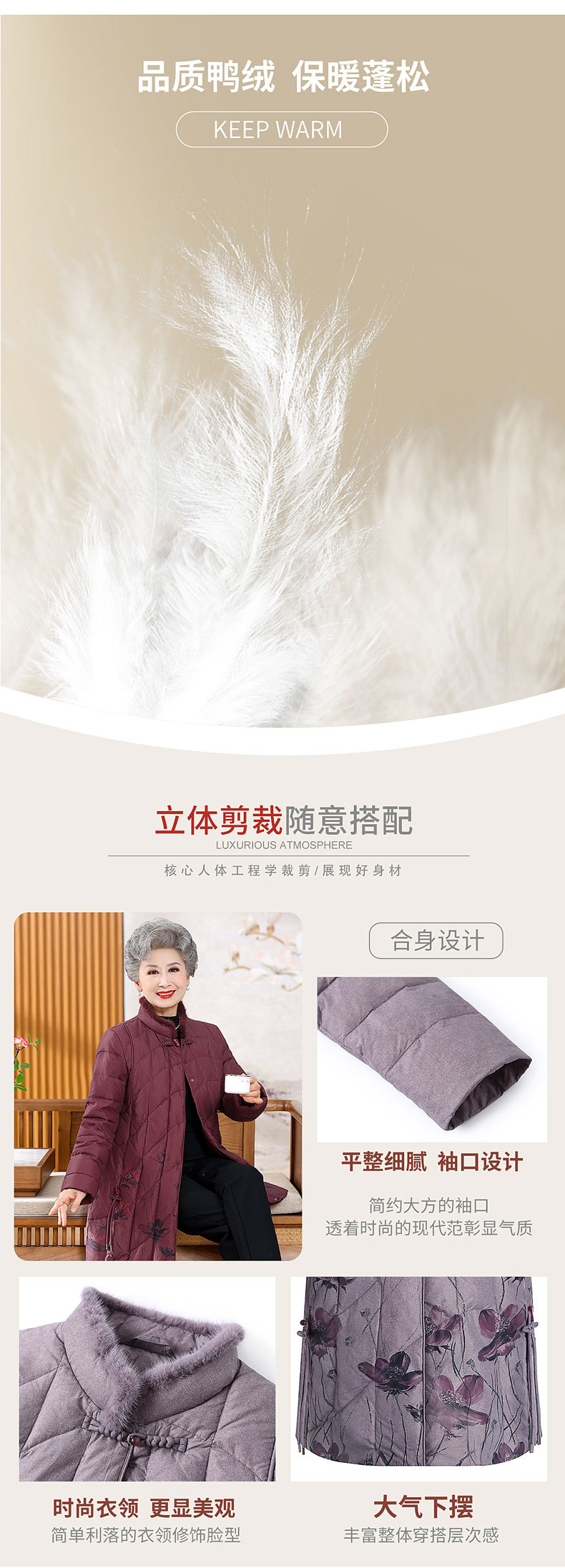 2024母ダウンジャケット上着冬中高年母服ダウンジャケット90白鴨パイル刺繍中国風