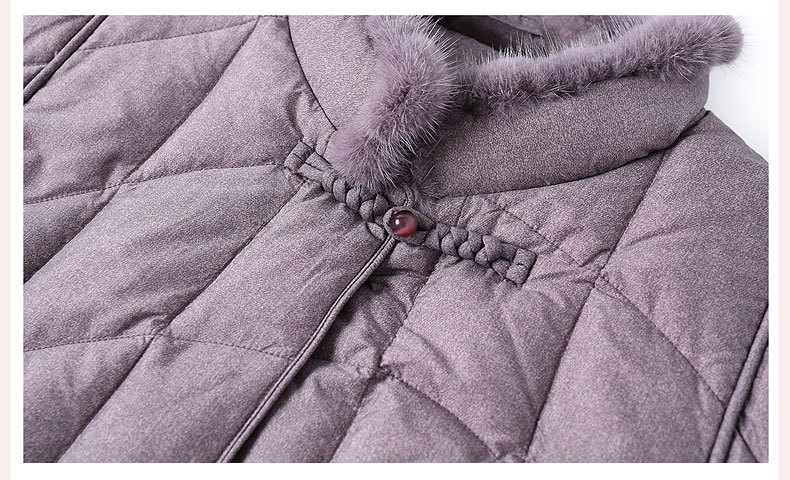 中高年ダウンジャケット女性の中長タイプのお母さんのコート冬服ミンクの毛襟のお母さんのダウンジャケットの綿服の上着の冬