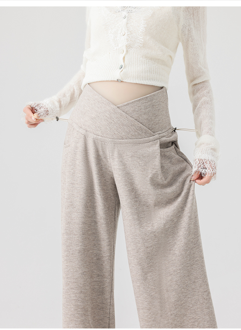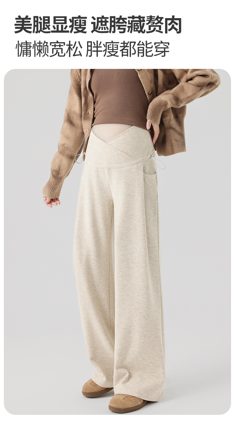 妊婦のズボンの春秋のタイプの外は2024の新型のベルベットの広い足のズボンの妊娠の初期のズボンの秋の服装の冬の服装を着ます。