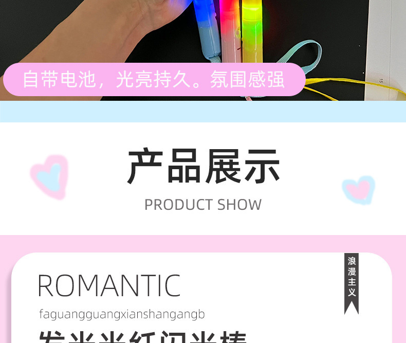 新款发光荧光棒闪光仙女棒演唱会派对助威道具LED电子光纤棒批发