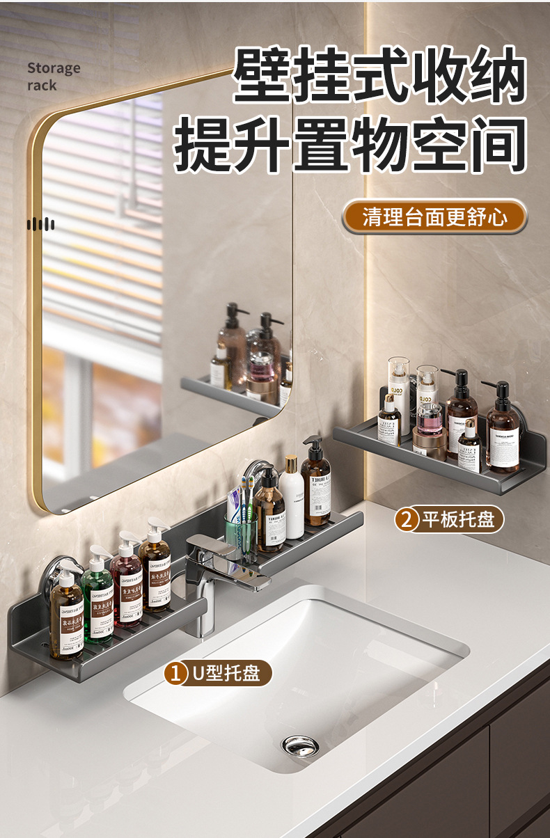 镜前卫生间置物架厕所洗手台盆洗漱台壁挂式免打孔浴室收纳架子