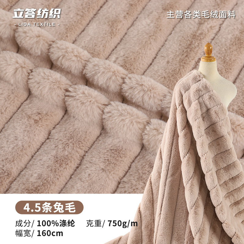ウサギの毛の引き出しの綿毛の縦条のジャカードの小さいウサギの毛の坑条はウサギの毛の服装の包みの靴の帽子のおもちゃの生地に似せます。