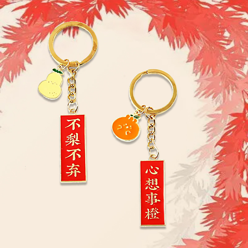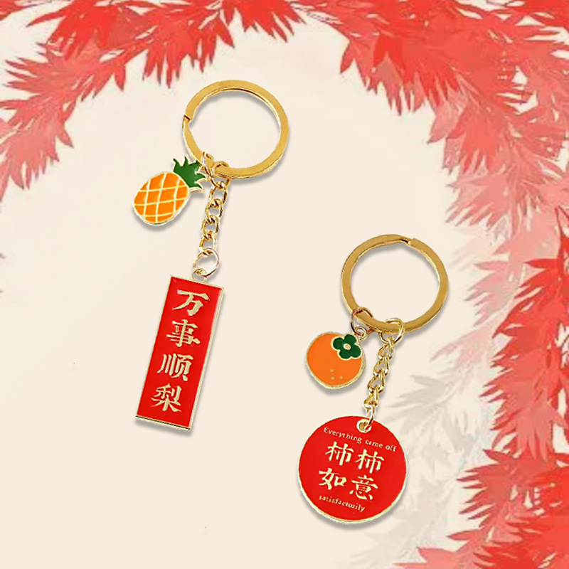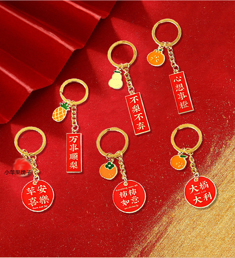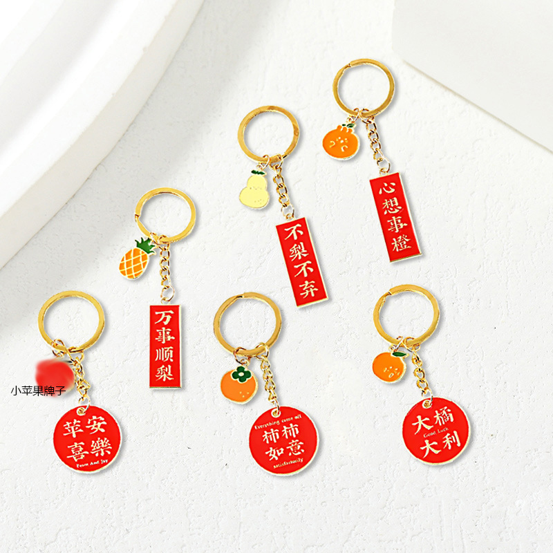 幸運激励志文字果物キーホルダーストラップ男女個性かばん装飾品insカップル祝日プレゼント