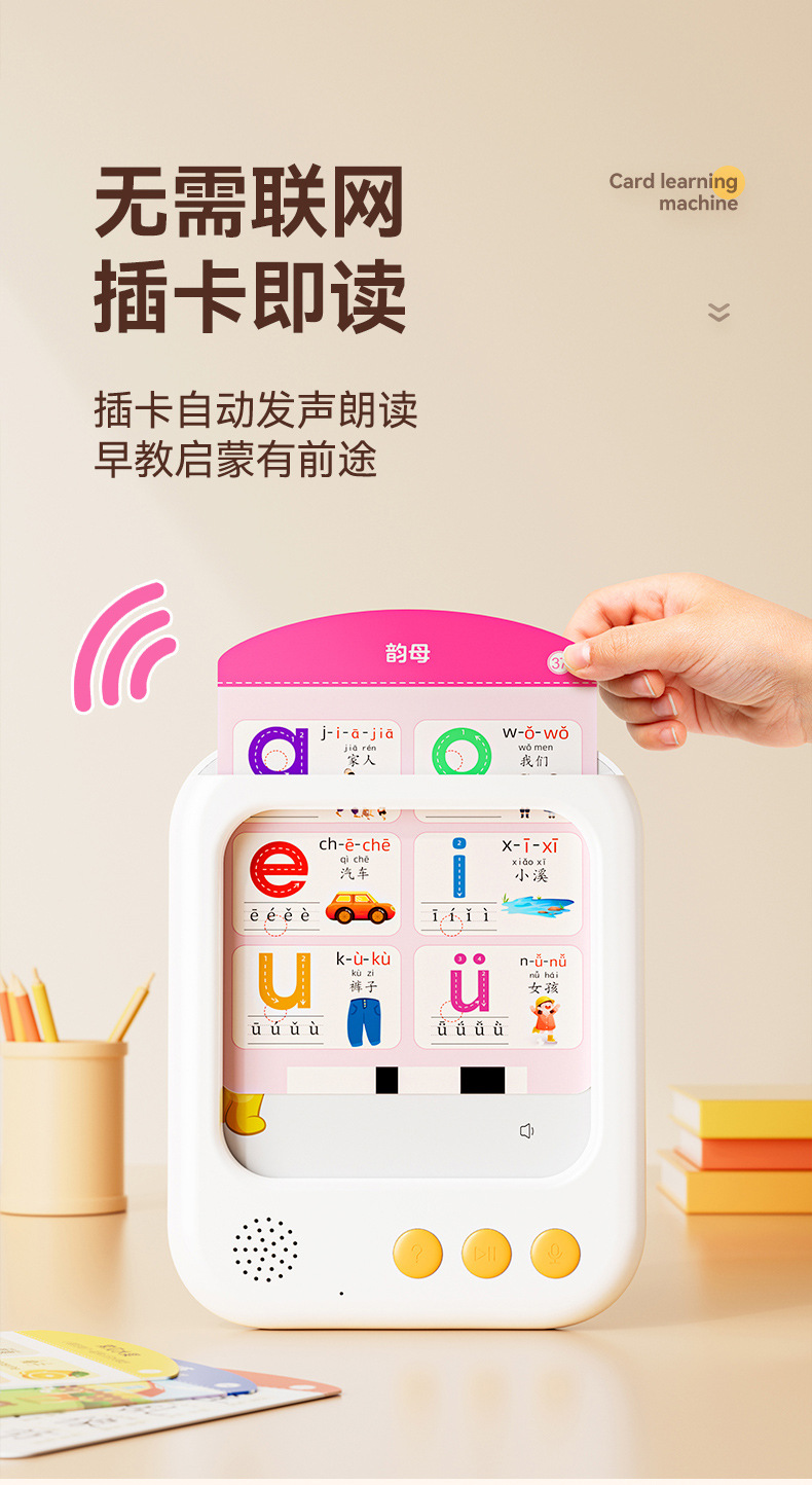 中国語、数学、英語、ピンイン、早期教育学習機、カード挿入機、幼児教育カード挿入おもちゃ、3歳のスマート音声0