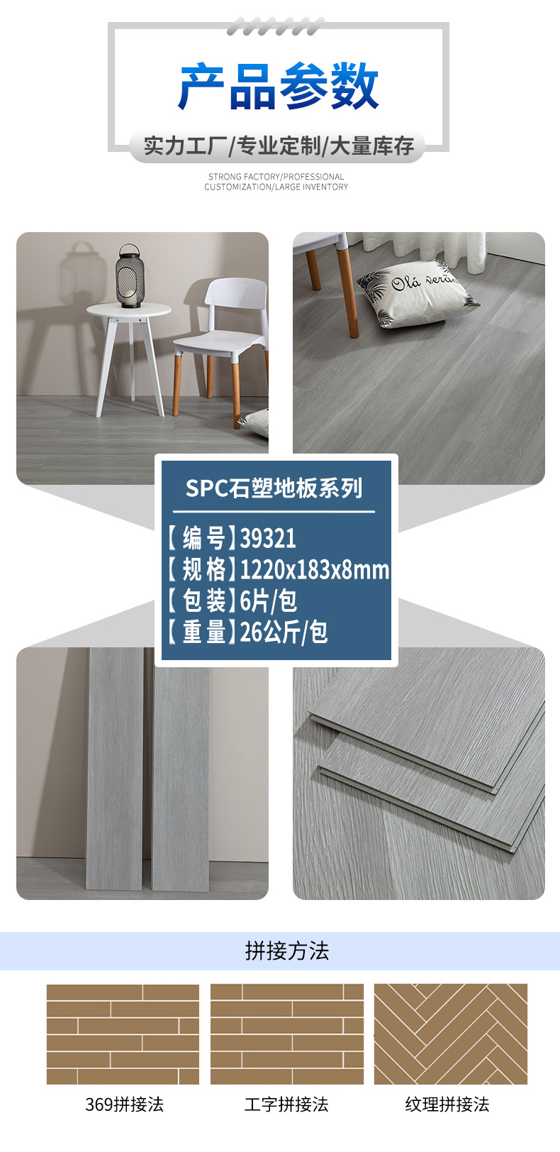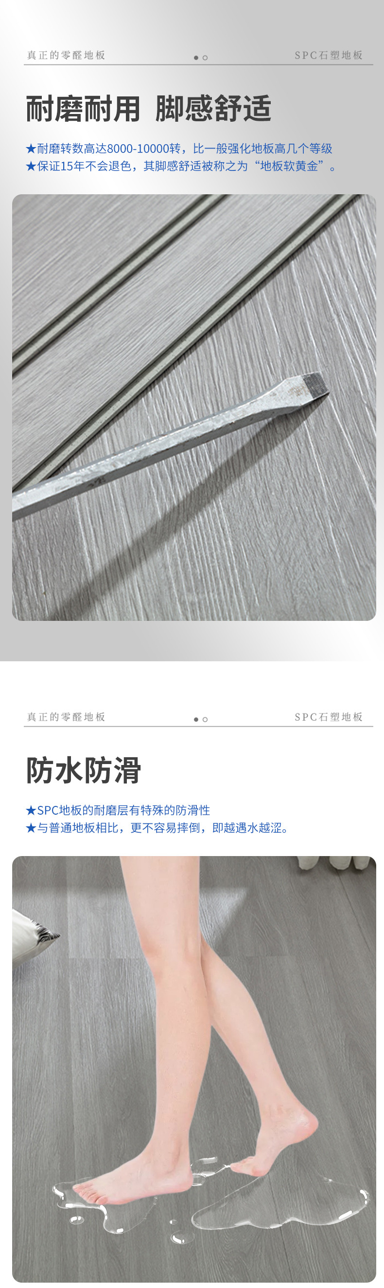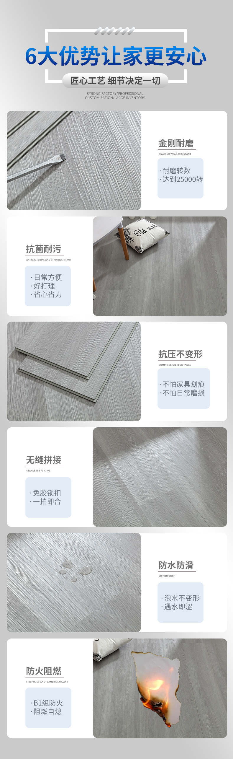 SPC石塑錠床6mm木目バックル式耐摩耗石晶床ホテル工事リフォーム防水仕切り