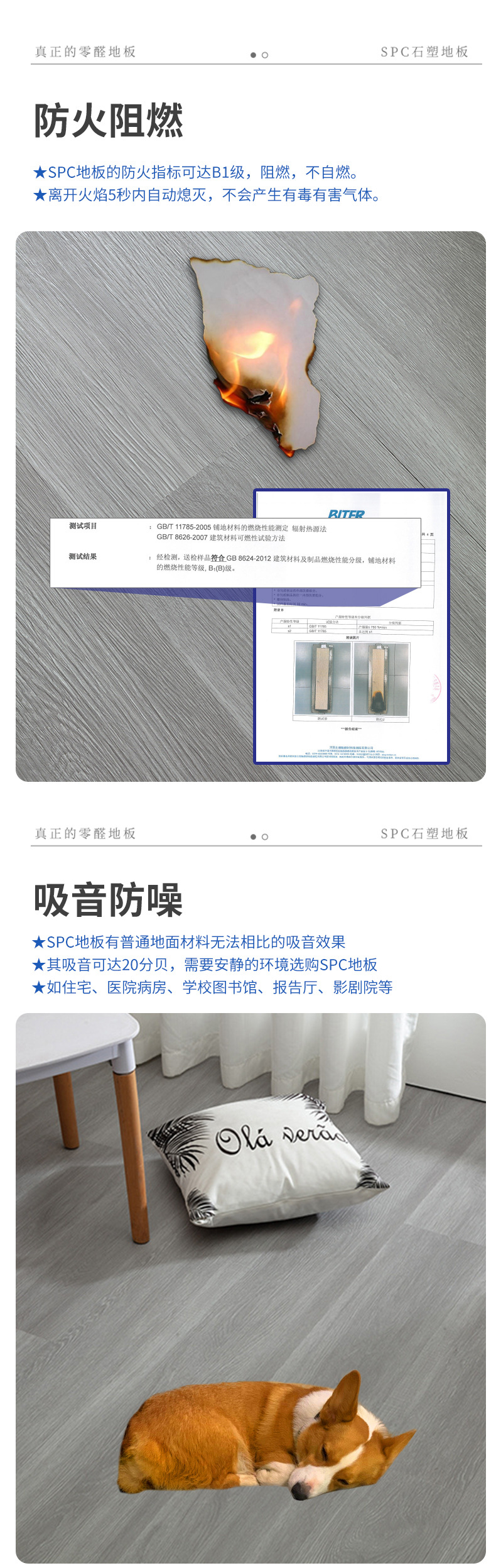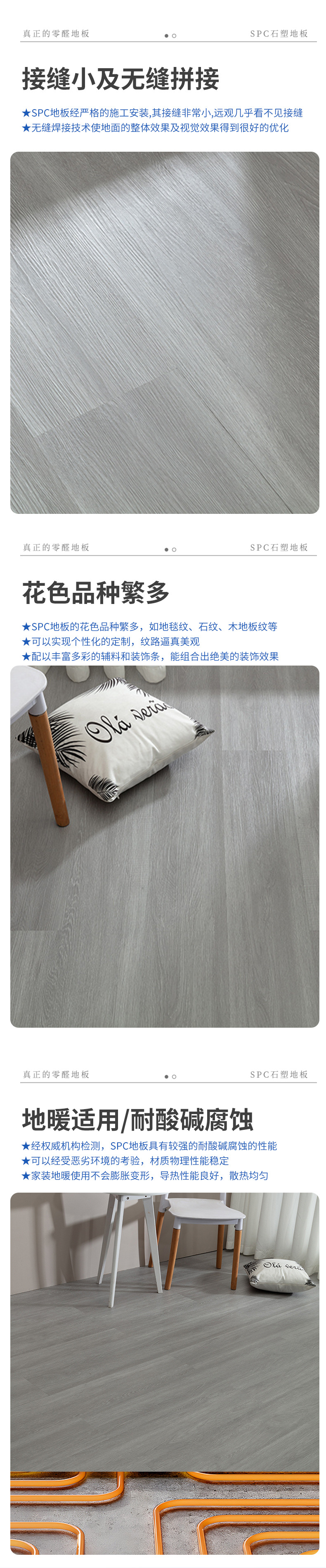 SPCストーンロック床12mm木目バックル耐摩耗性石晶床家庭用家具は静音防水を厚くしている