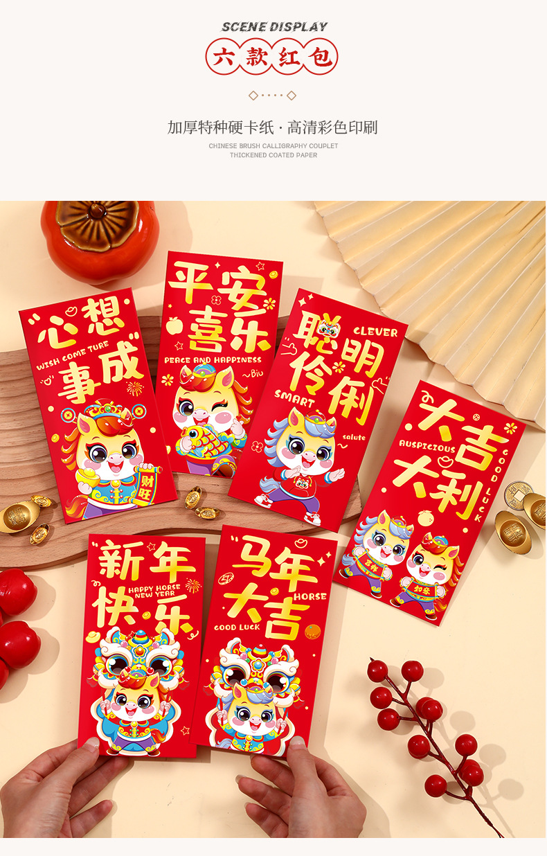 2026年新年紅包 馬年福袋 マット仕上げ 春節お年玉袋 箔押し汎用千元大吉大利紅包袋