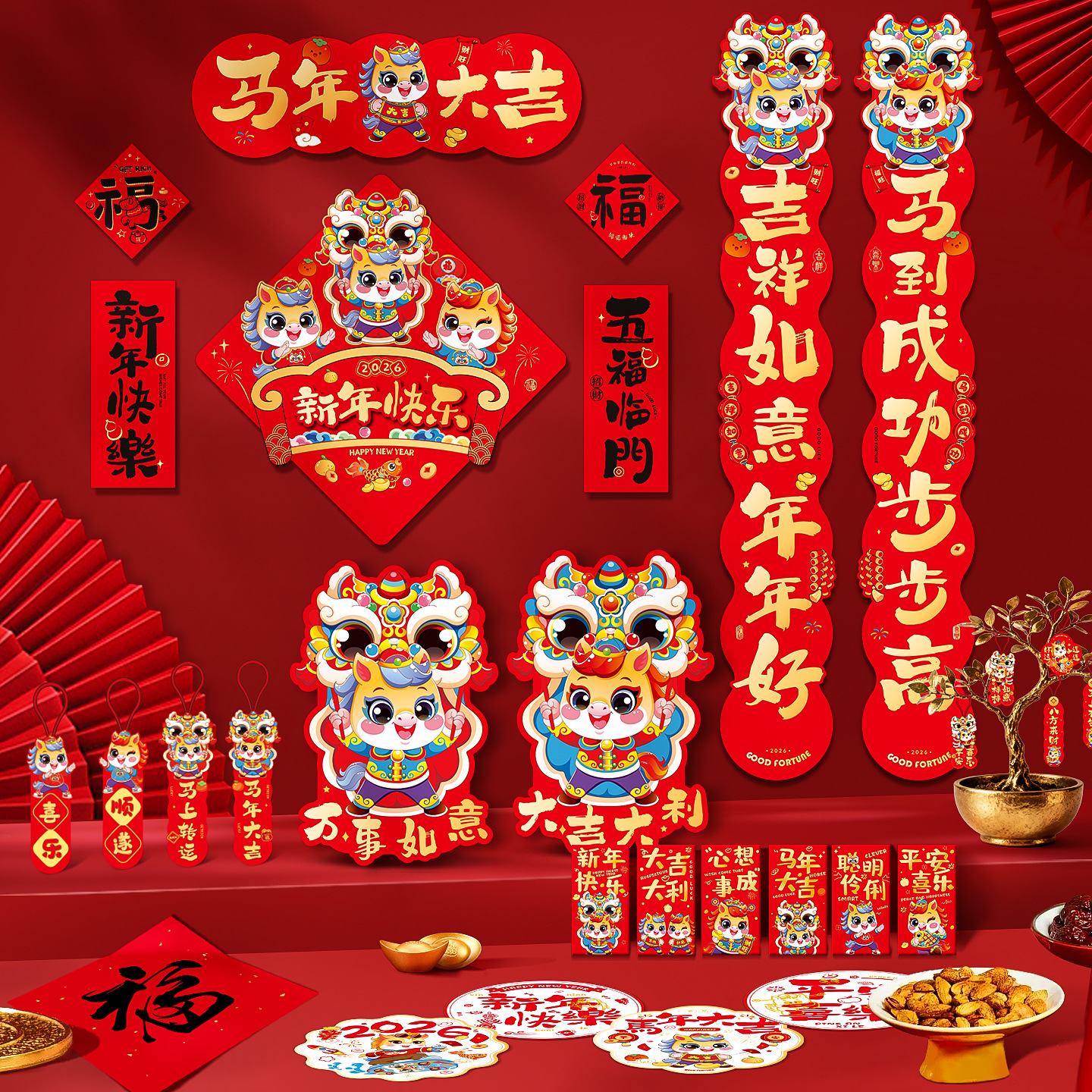 2026年馬年対聯大特価パック 新年元旦春節対聯 祝福文字ステッカー 新年飾り 大門飾り 年越し用品卸売