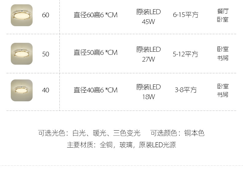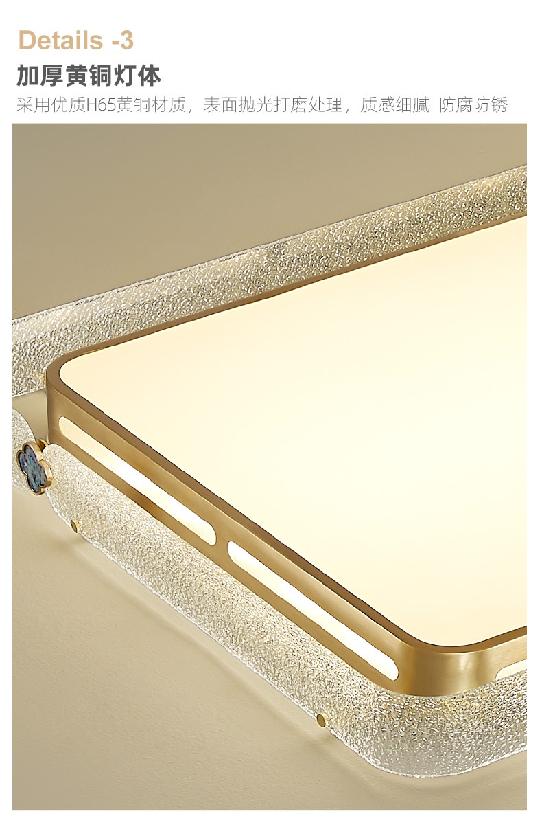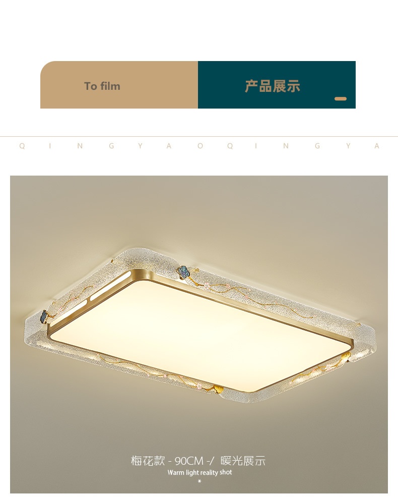全銅エナメル色天井灯大気家庭用長方形客間灯2024年新型主寝室書物灯