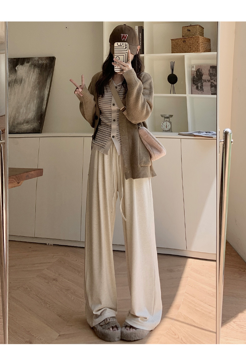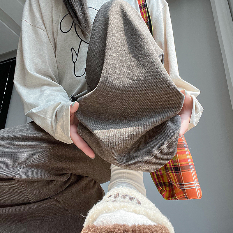 ストレートのもち米のズボンのゆったりした広脚のカジュアルなズボンの女性の2024秋冬の新型の垂れ下がった感とベルベットの厚い腰はやせています。