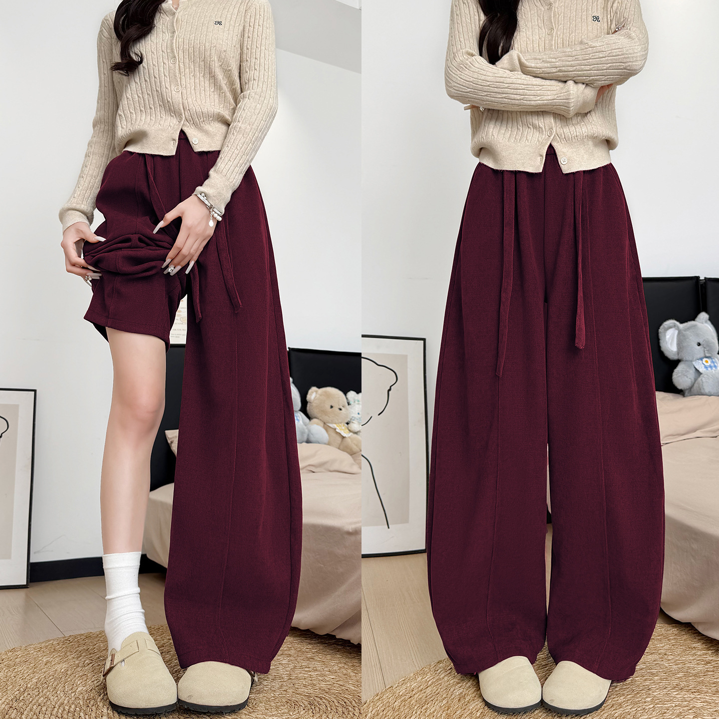 酒红色灯芯绒阔腿裤女秋季2025新款宽松垂感休闲慵懒小个子弯刀裤
