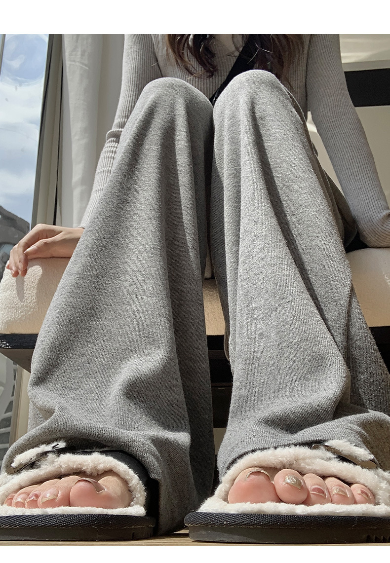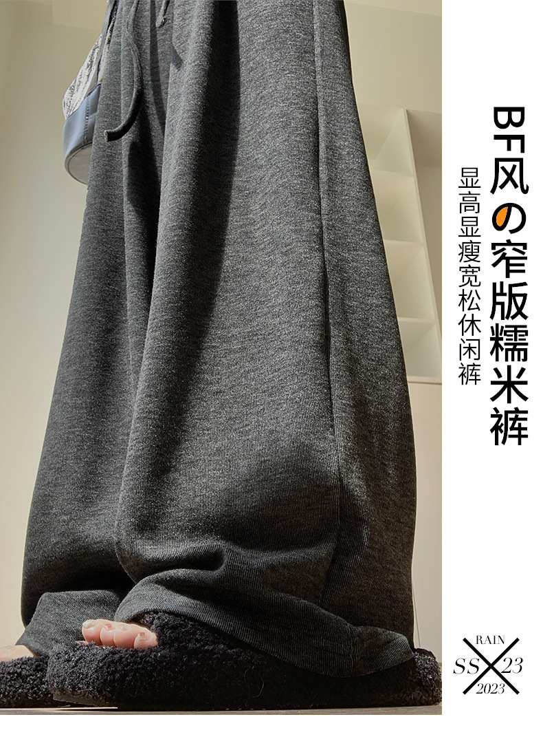 灰色糯米休闲裤女高腰秋季高个子宽松垂感梨形身材显瘦直筒裤子