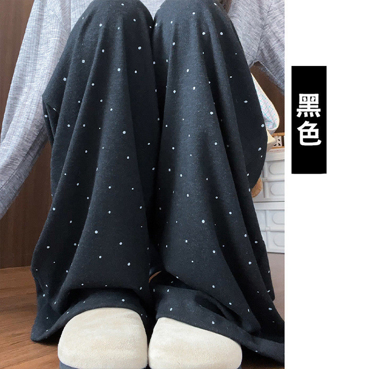 秋冬用星柄ラムウールゆったり厚手ワイドレッグストレートパンツ、保温性のあるルームウェア、ハイウエストで着痩せ効果あり