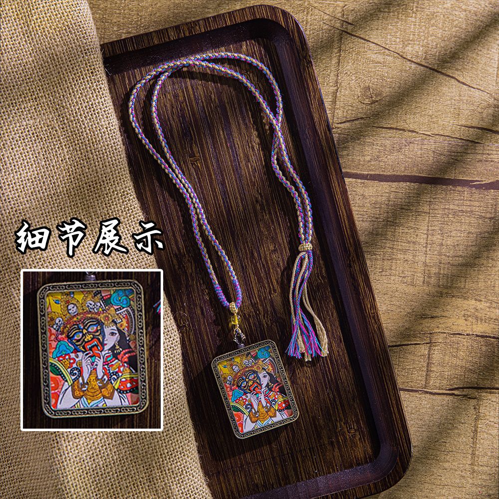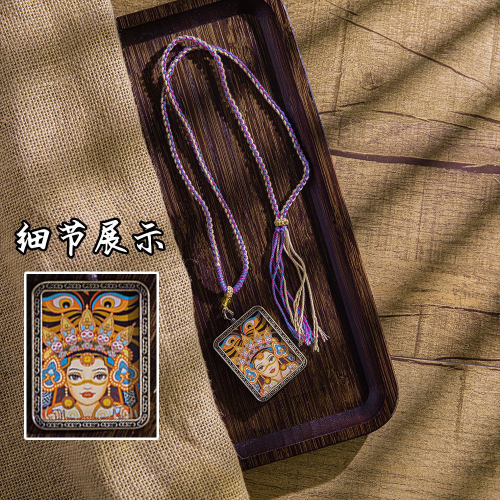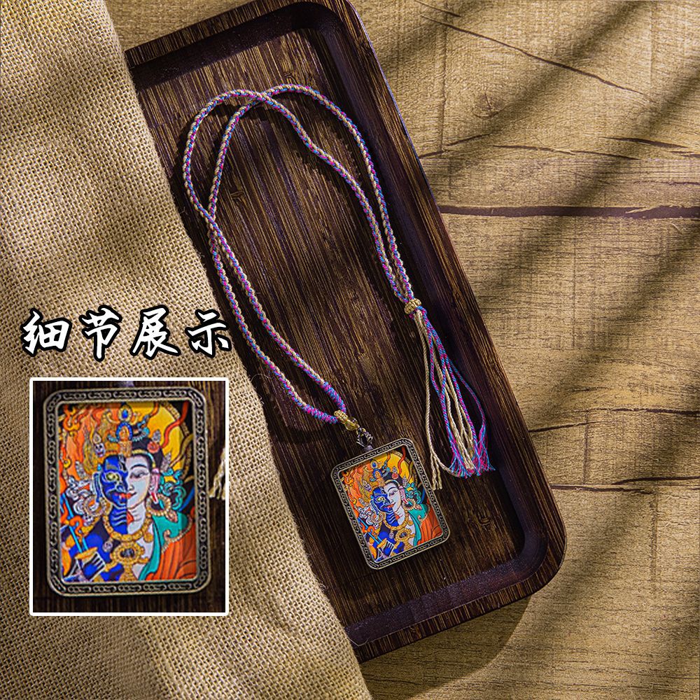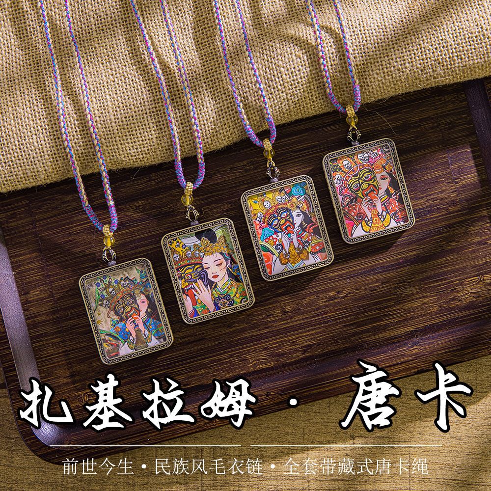 民族風チベット式ザキラム唐カードペンダント前世今生女財神毛衣チェーン半手描きガウ箱