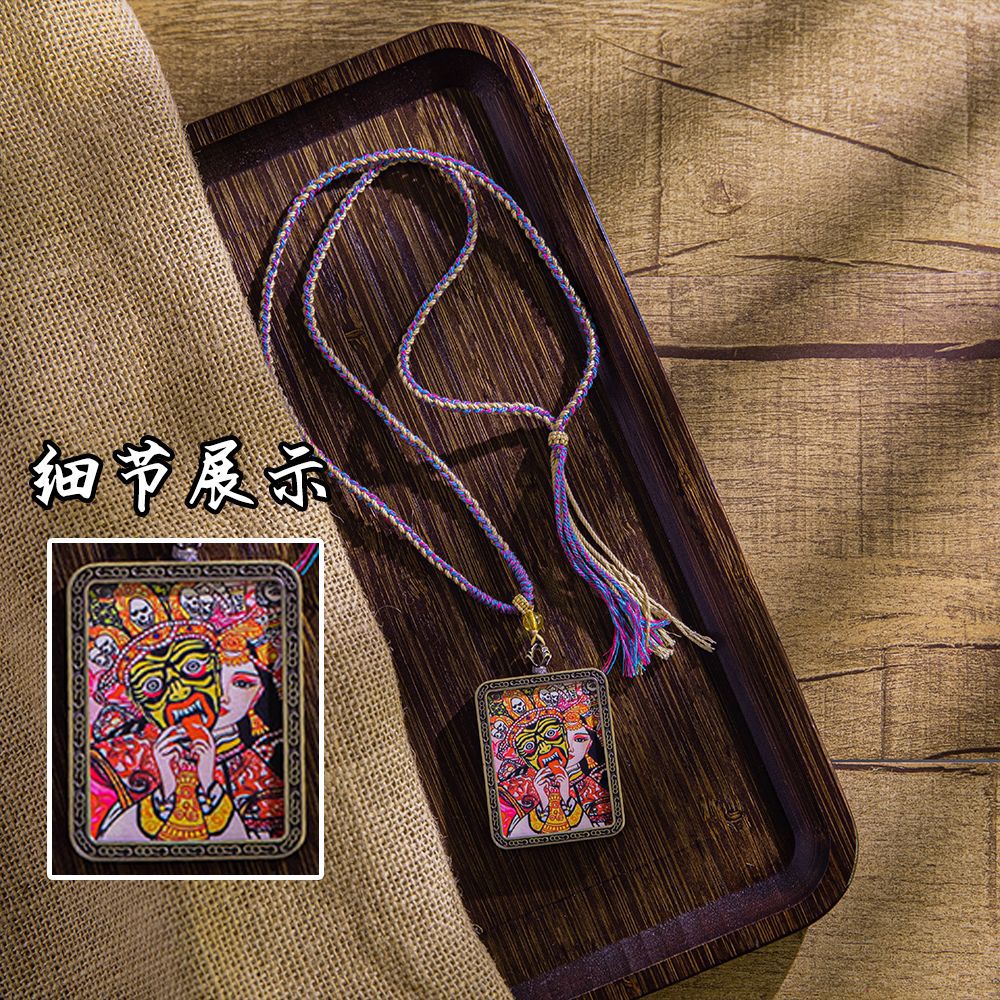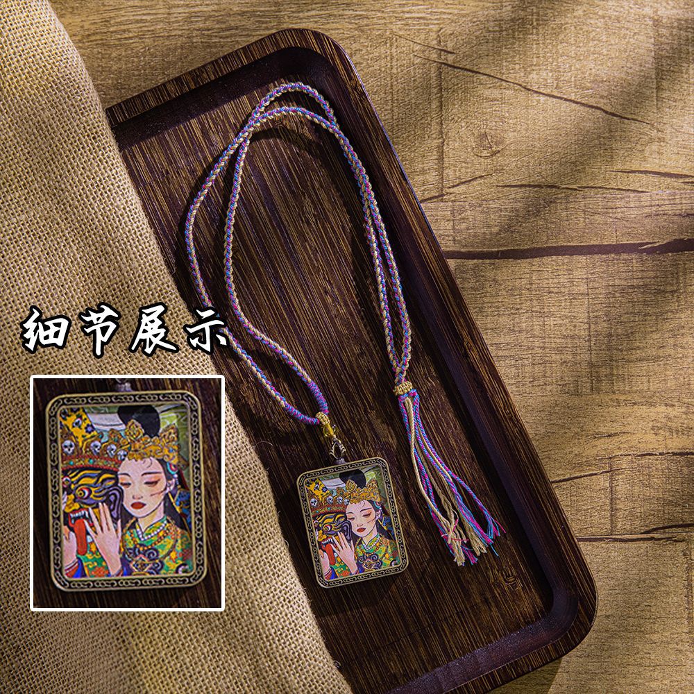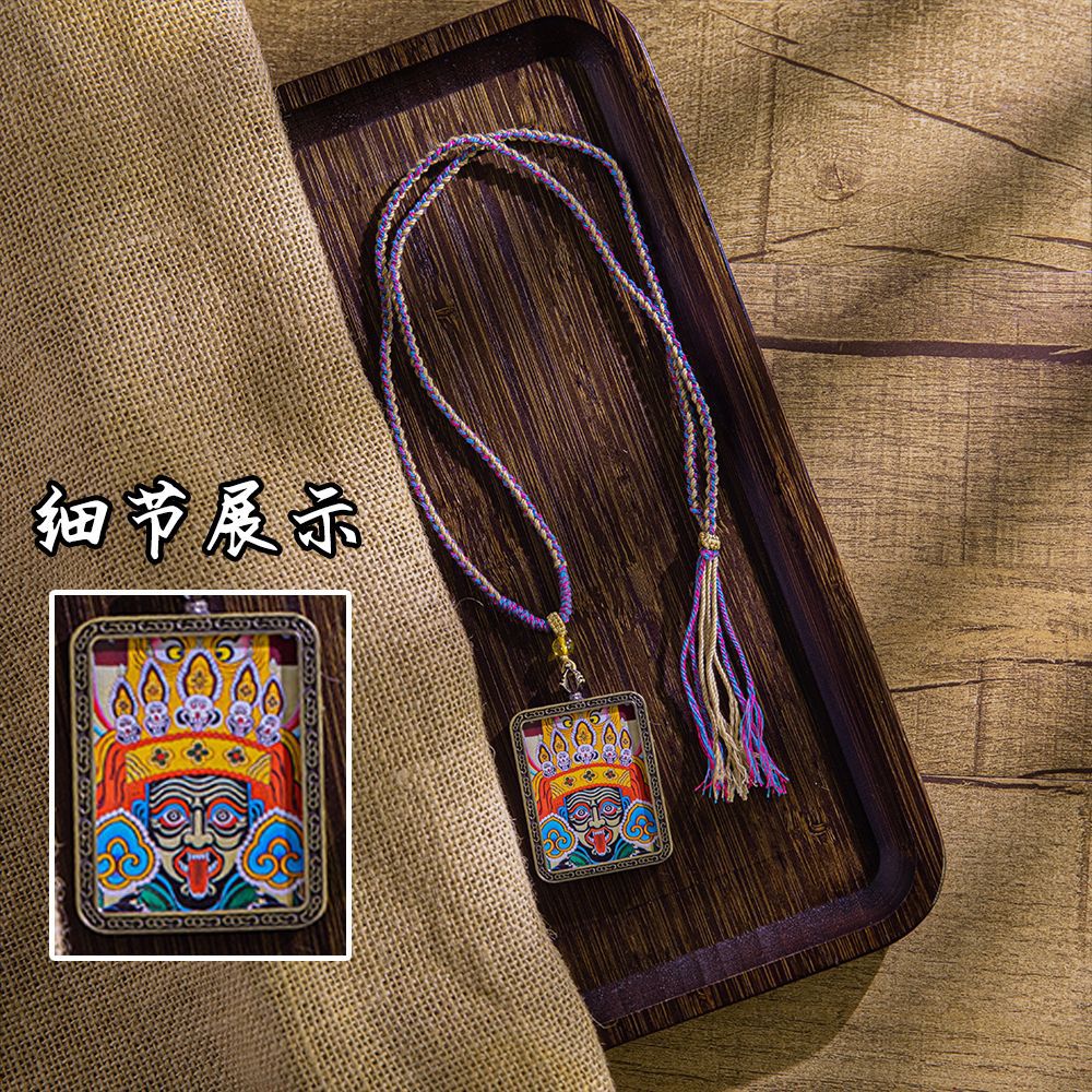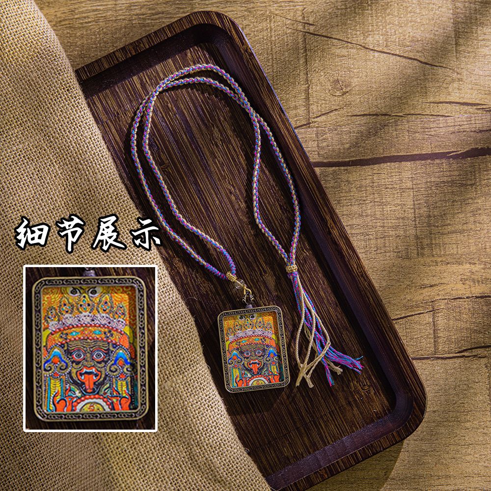 民族風チベット式ザキラム唐カードペンダント前世今生女財神毛衣チェーン半手描きガウ箱