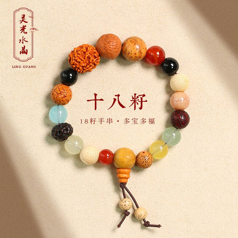 杭州霊隠財神同金金持ち花蓮手串緑檀木水草瑪瑙手彫り多宝仏珠