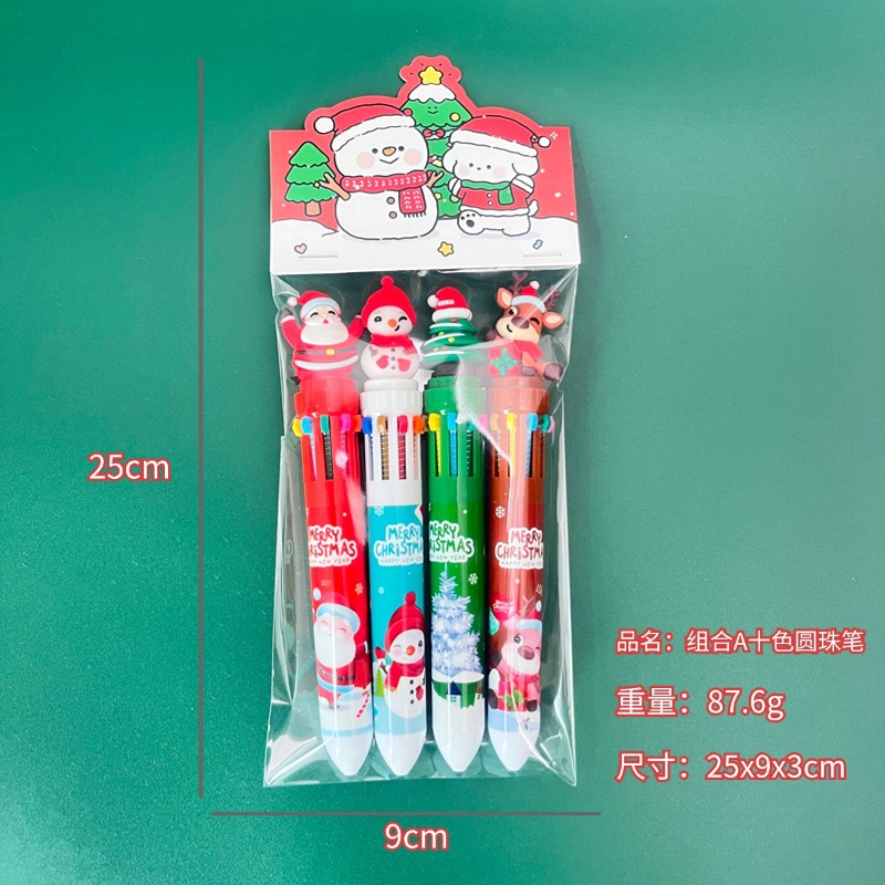 圣诞十色圆珠笔卡通萌宠学生节日礼物彩色手账笔创意文具多色油笔