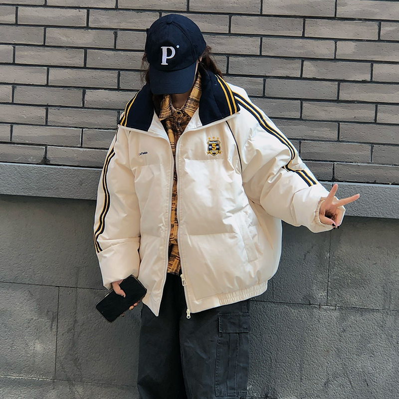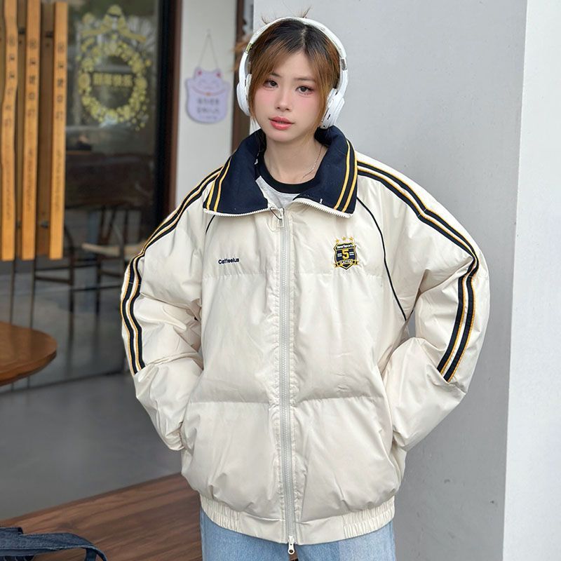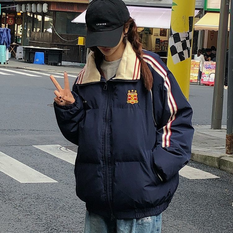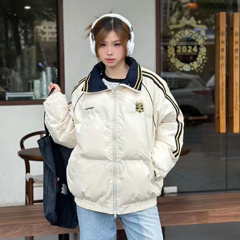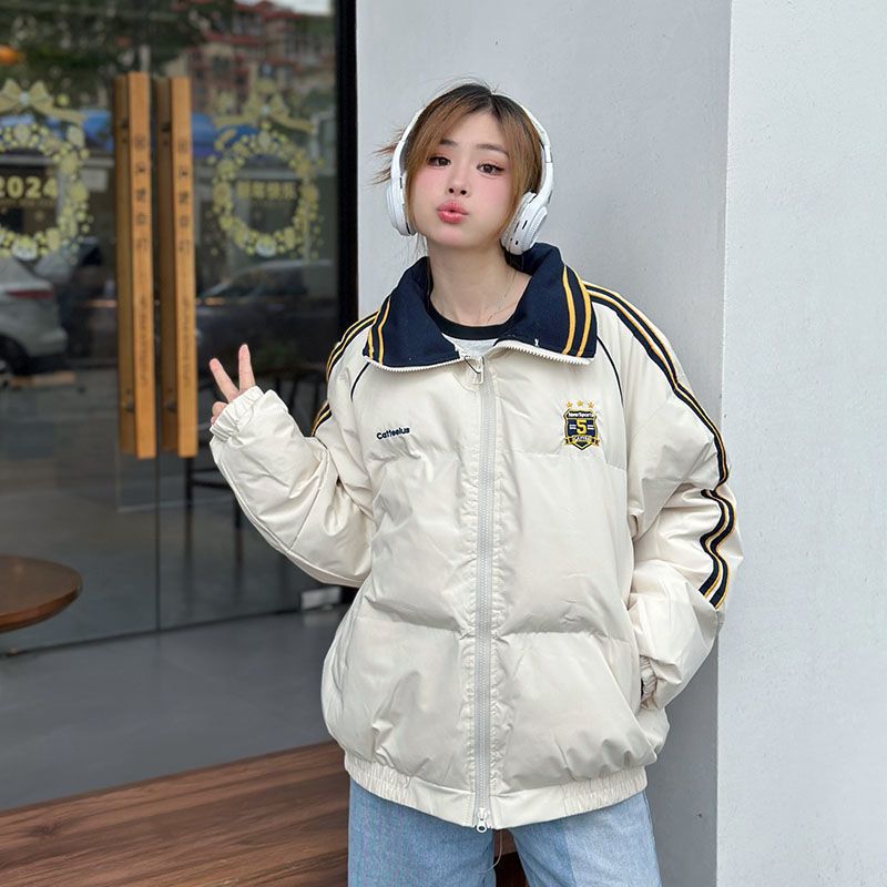 2025年新款条纹翻领羽绒棉服女冬季宽松加厚面包服棉衣韩版外套潮