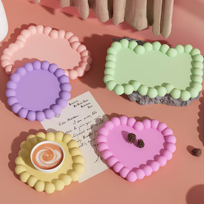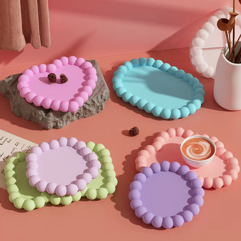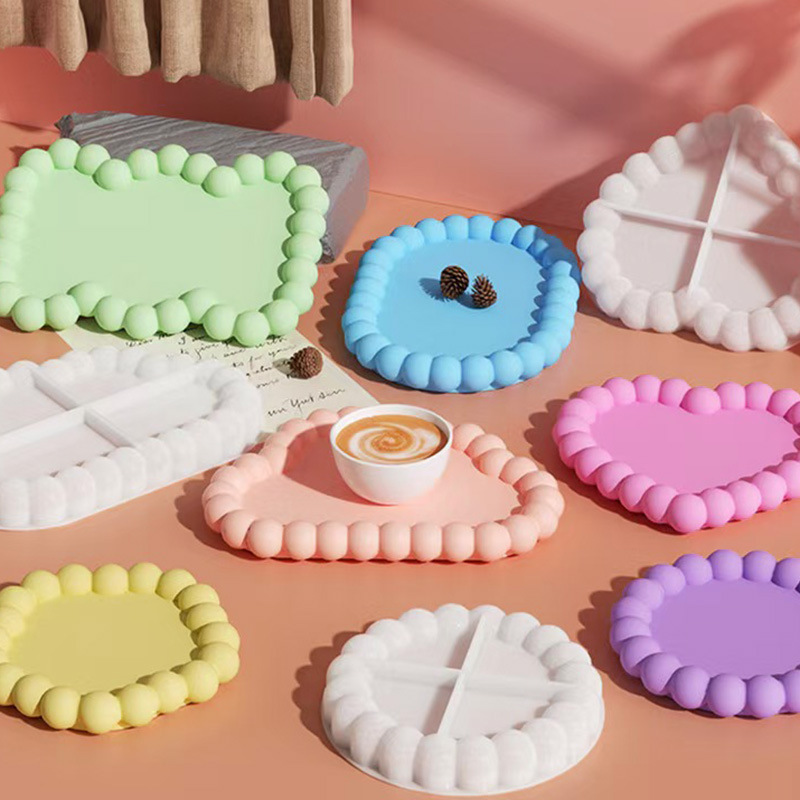 幾何学的なバブルこぼれ防止コースター樹脂シリコンモールド DIY 水玉模様レーストレイ石膏収納トレイ