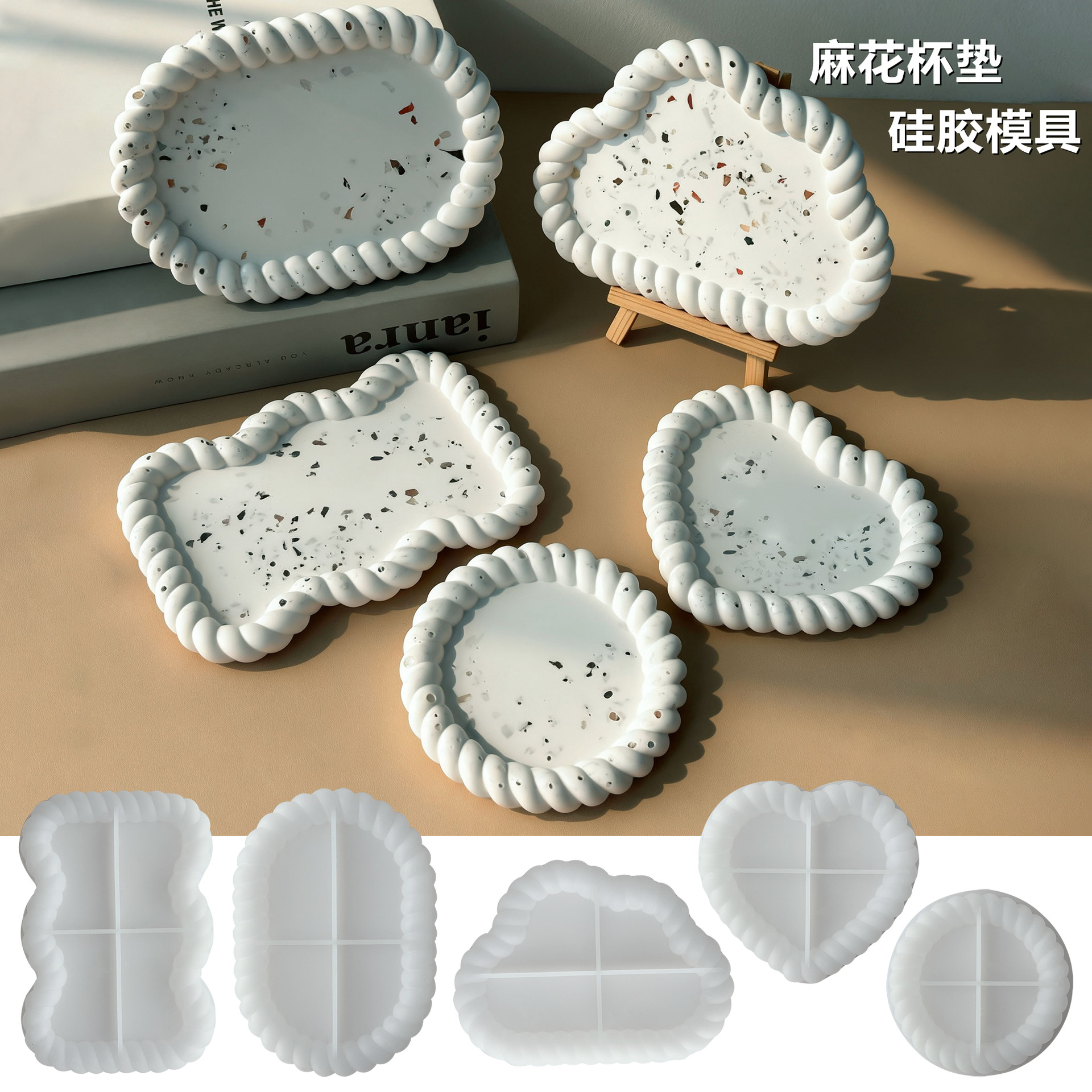 嘉德汇 跨境麻花杯垫模具DIY滴胶垫子石膏托盘首饰收纳盘硅胶模具