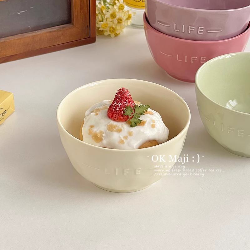 Insヨーグルトボウルレリーフセラミックボウル家庭用クリーム風食器高颜値朝食ボウルご飯ボウルデザートボウル