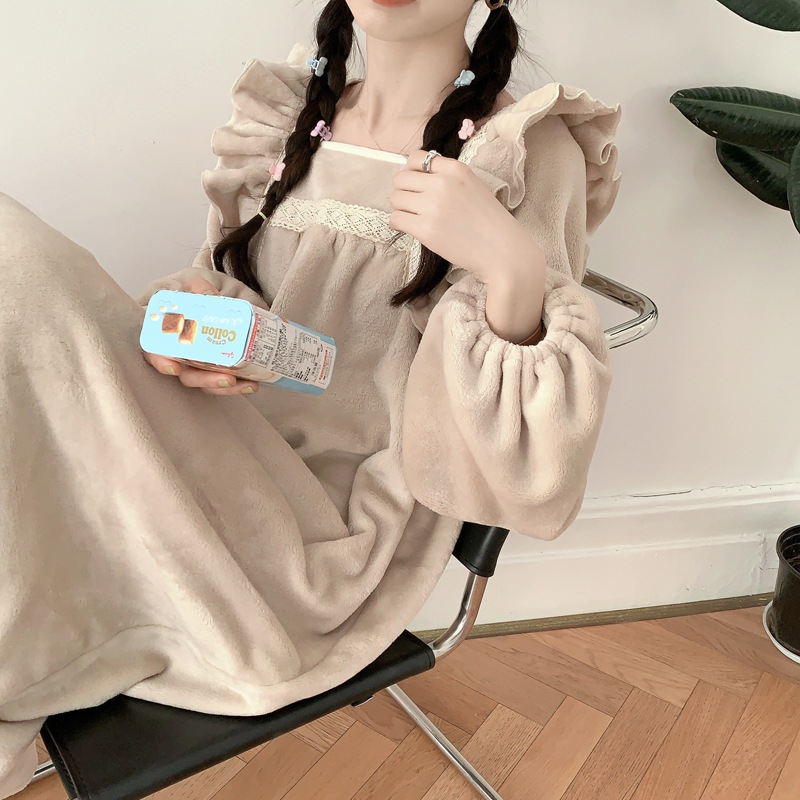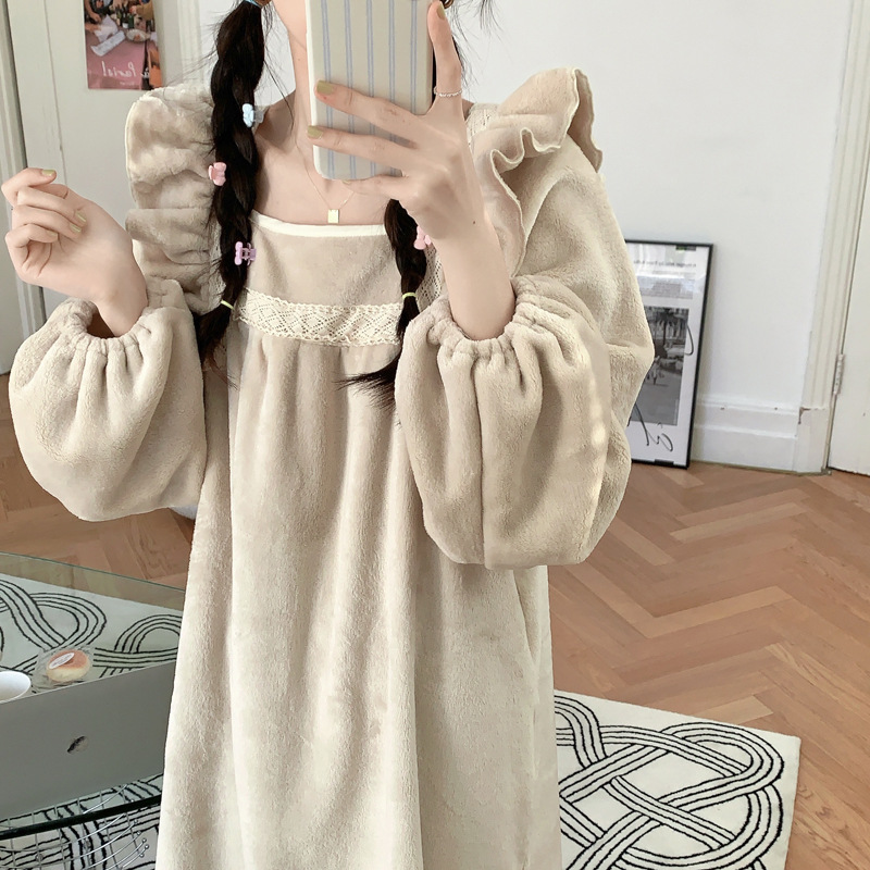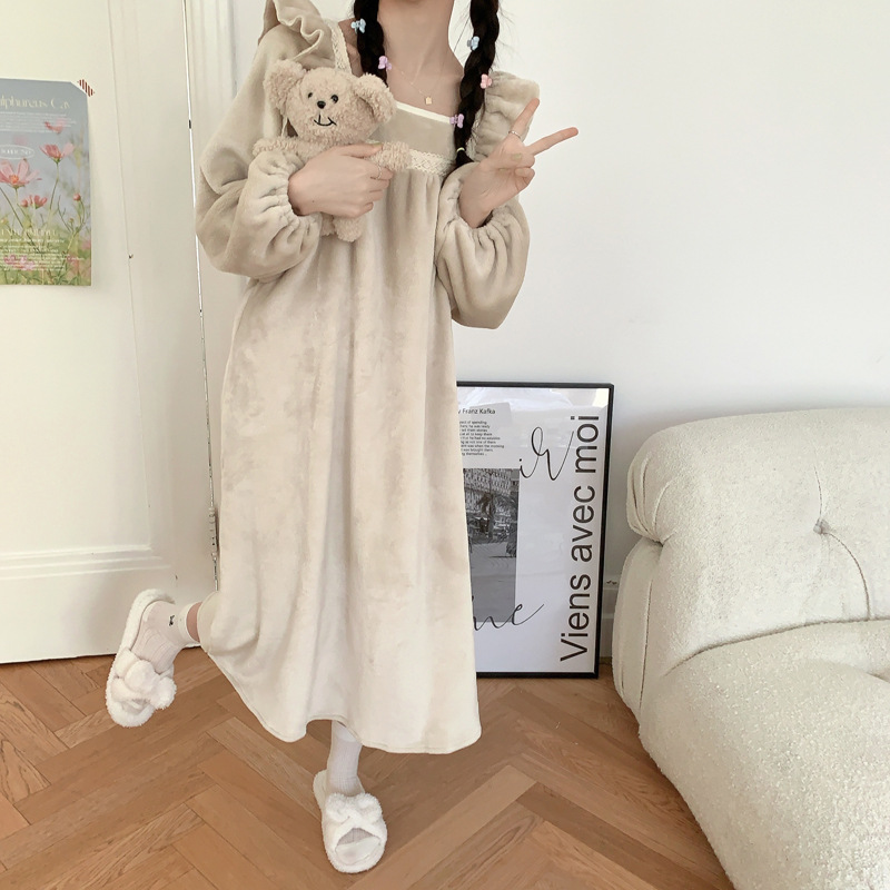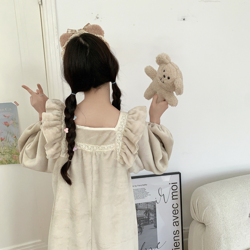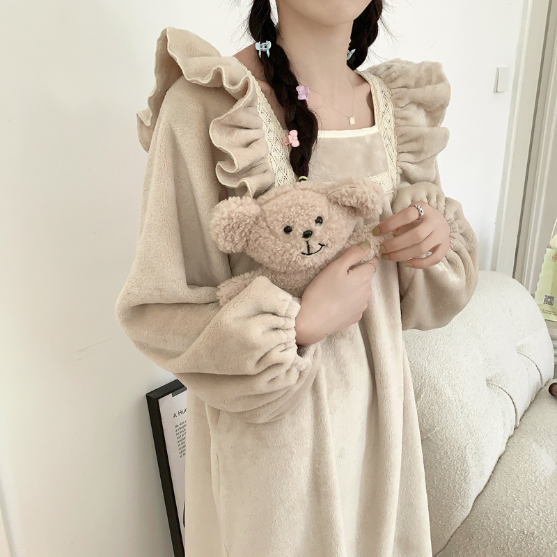 韓国insカップルのベルベットパジャマ女性は冬にベルベットを厚くして保温してかわいい甘い家庭服のパジャマを着ている