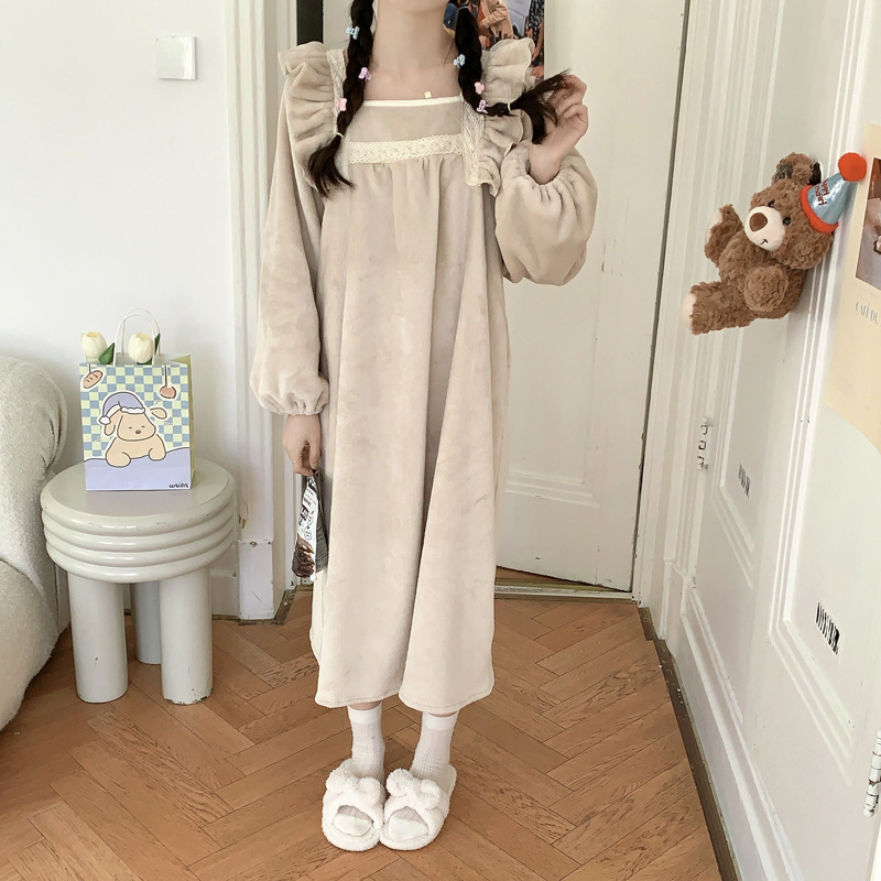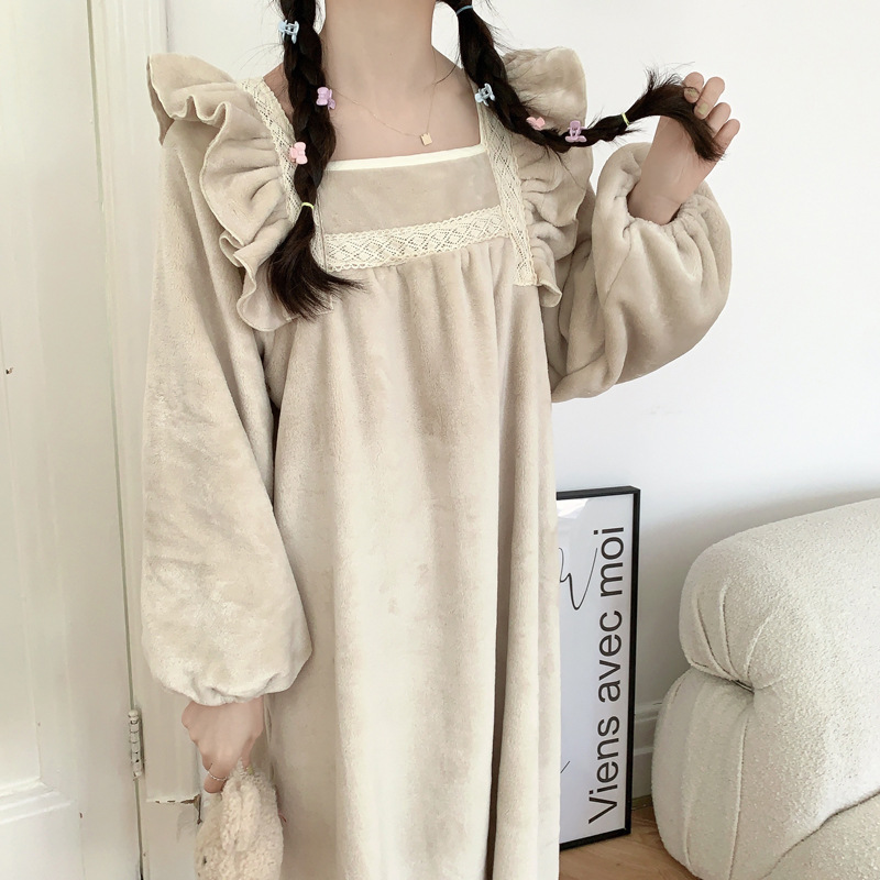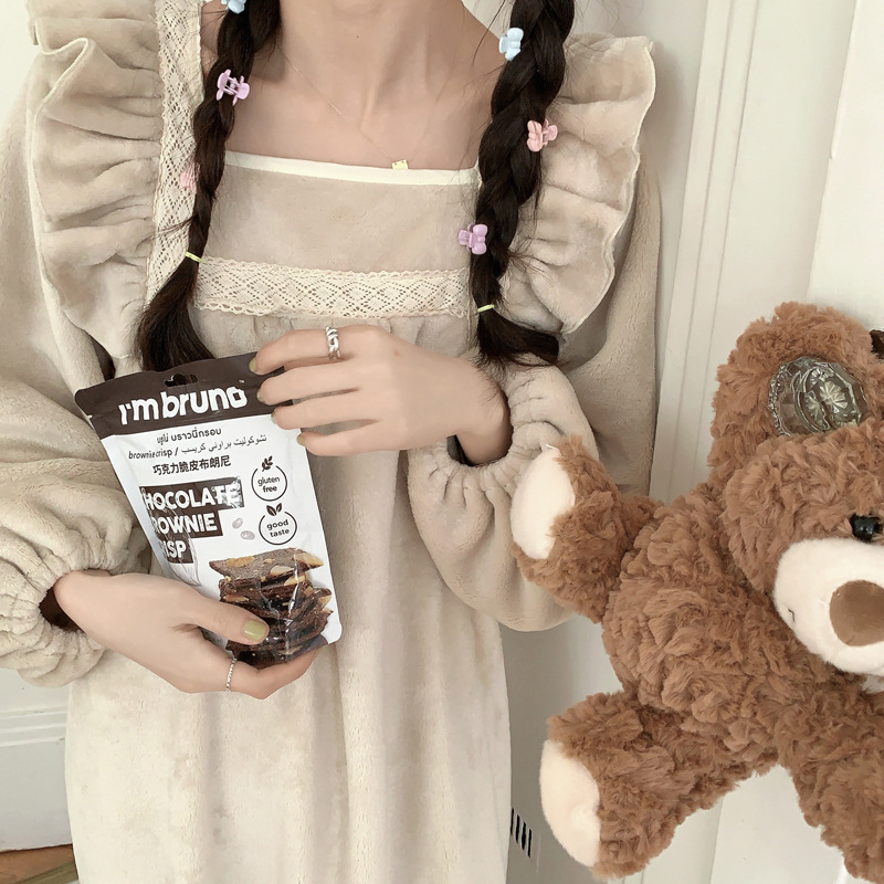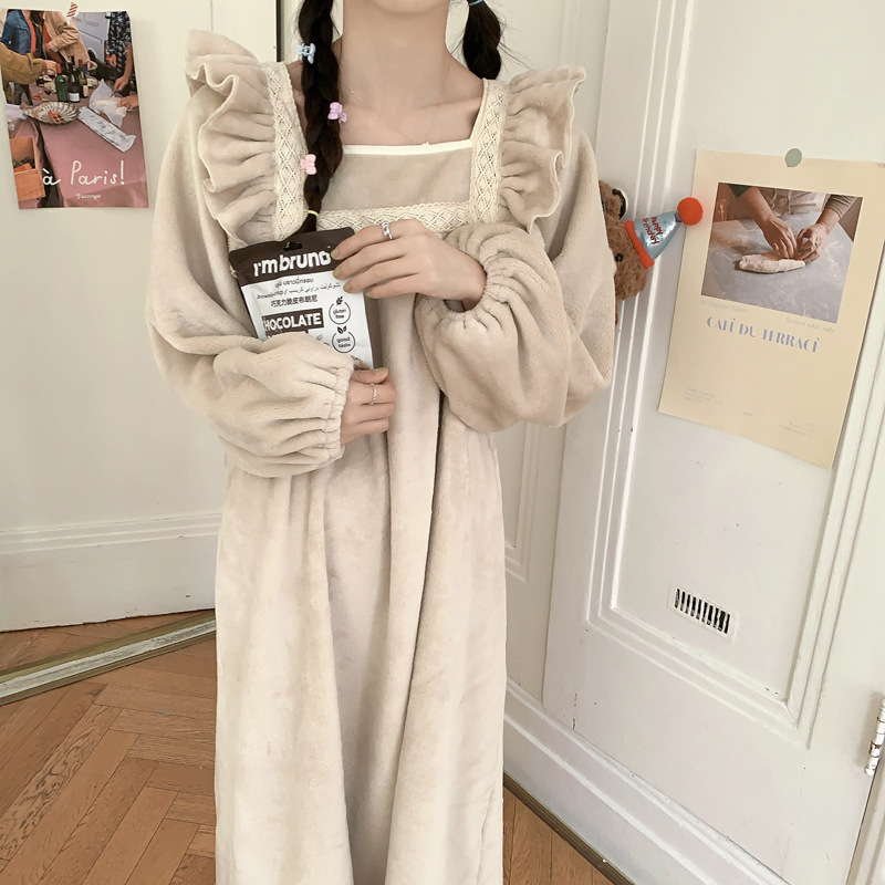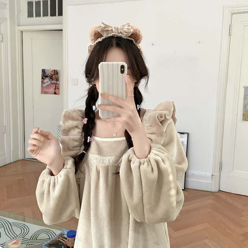 韓国insカップルのベルベットパジャマ女性は冬にベルベットを厚くして保温してかわいい甘い家庭服のパジャマを着ている