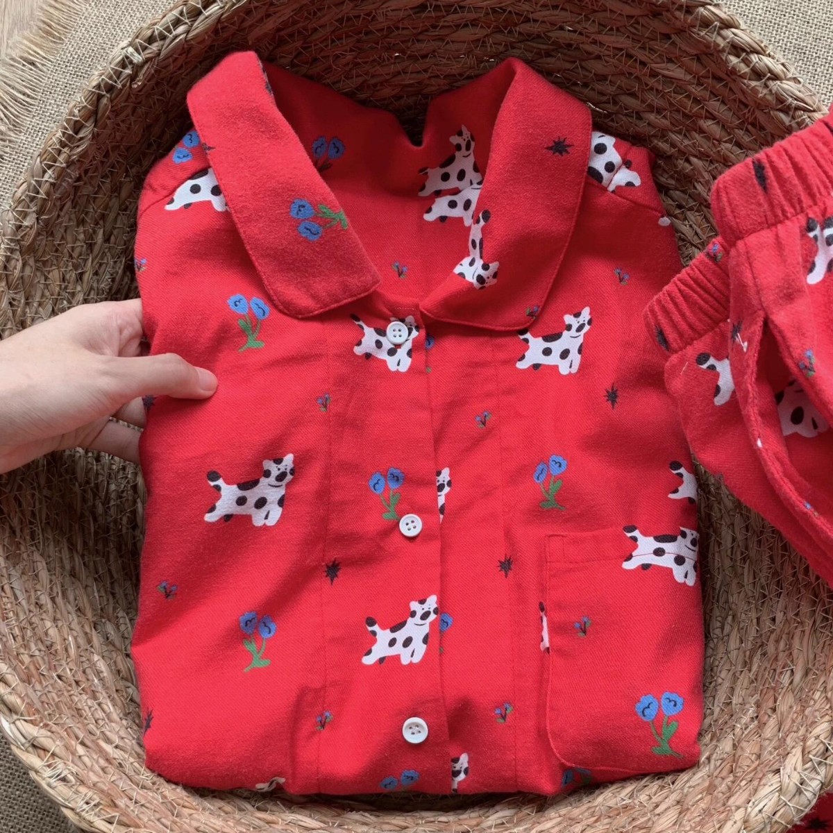 韓国insさん冬の新しい北極のベルベットの女性の愛のプリントの家の服の頭のパジャマのスカートの卸売り