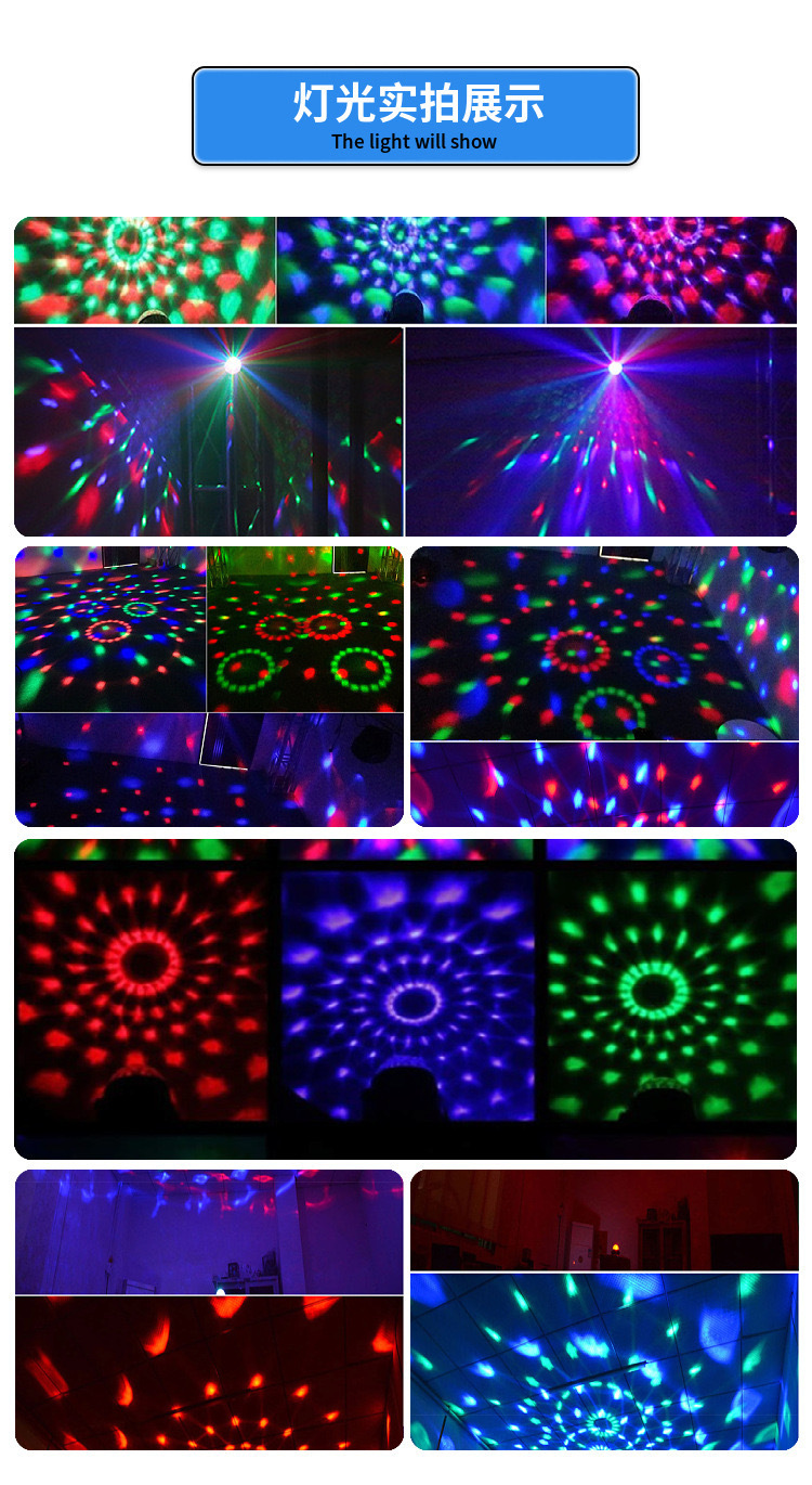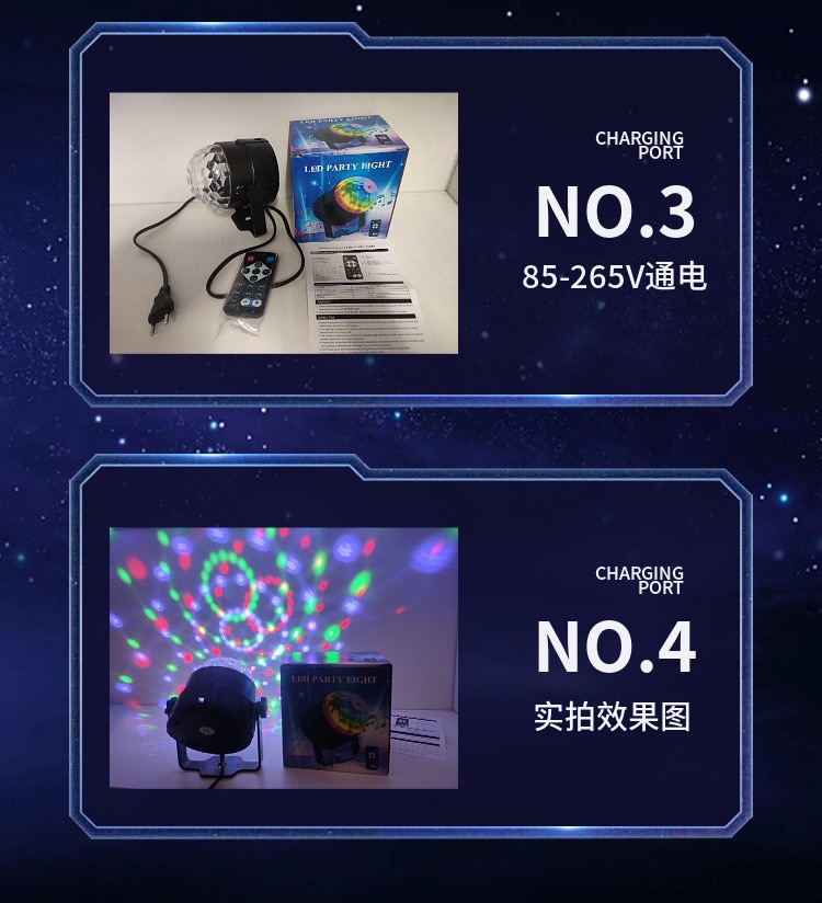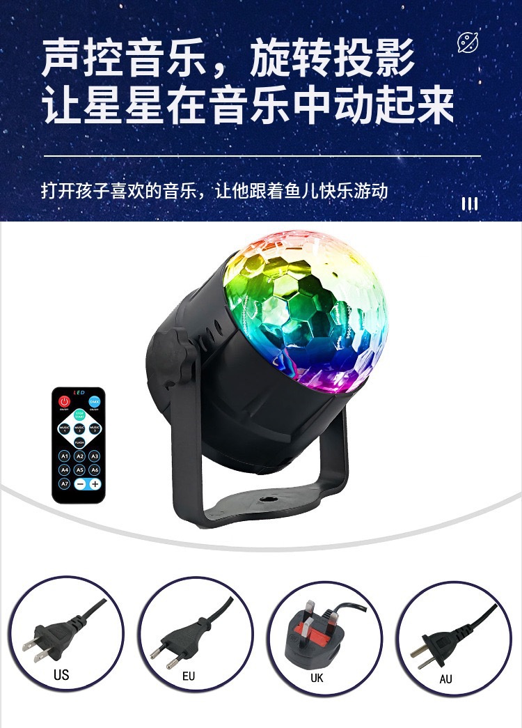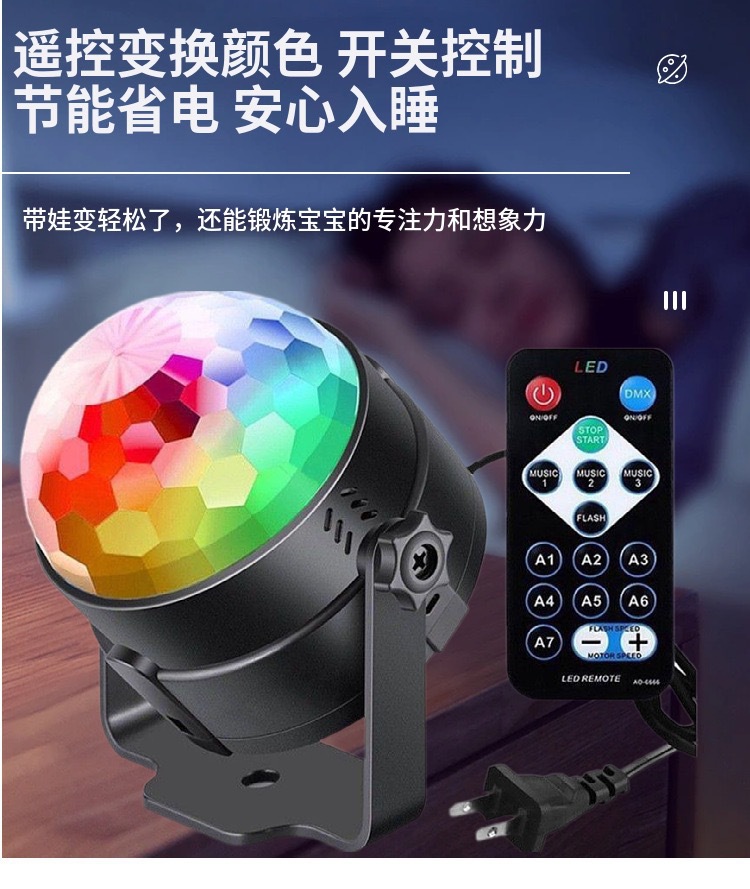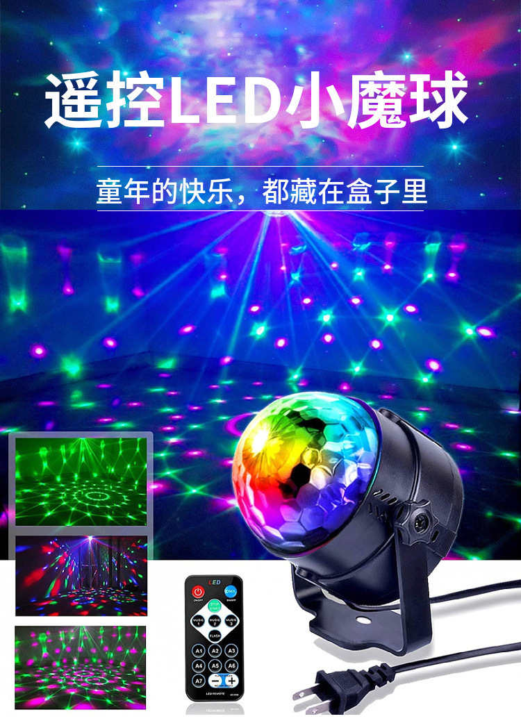 遥控LED七彩魔球灯水晶声控旋转舞台灯直播背景灯KTV酒吧蹦迪灯
