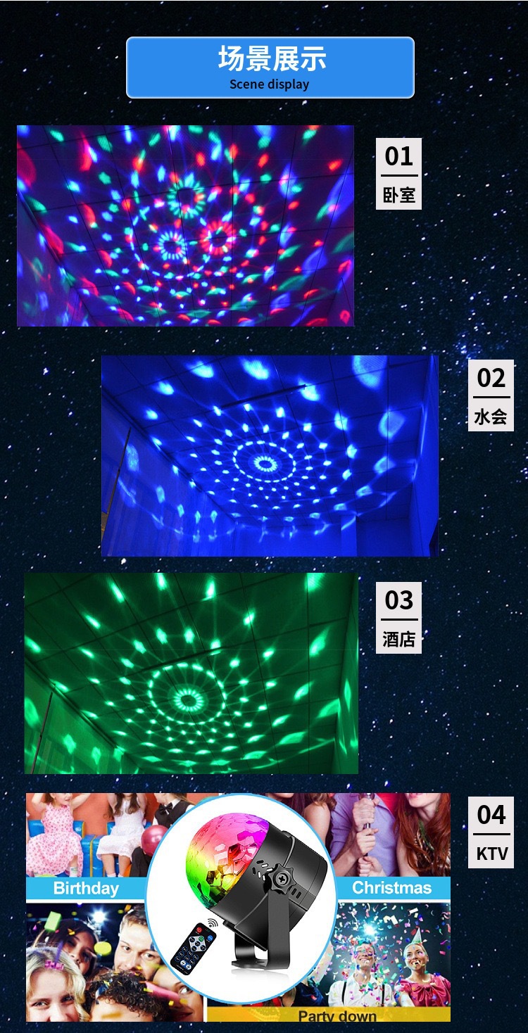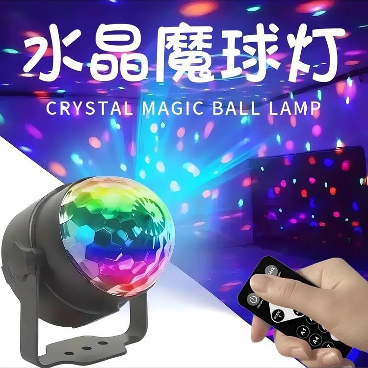 リモコンLED七色魔球灯水晶音控回転舞台灯生放送背景灯KTVバートランポリン灯