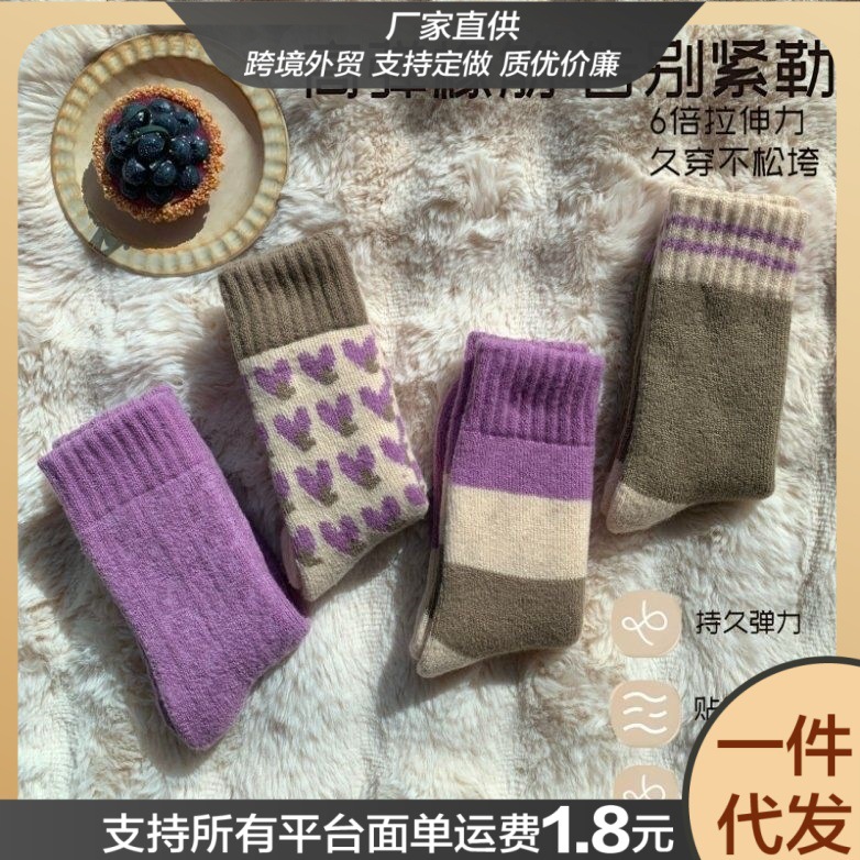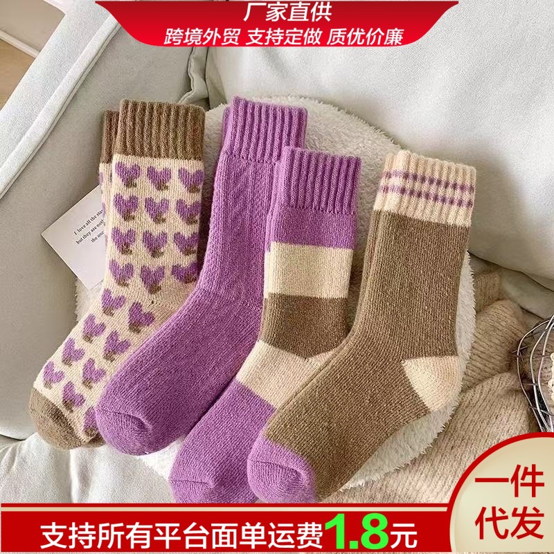 秋冬款毛绒防寒保暖袜加厚款袜子女中筒袜冬季毛圈袜超厚诸暨袜业