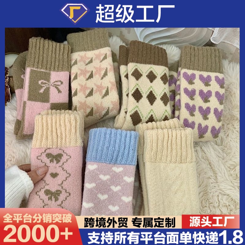 秋と冬のラブガール暖かい靴下女性のミッドカーフソックステリーソックス無地靴下快適で多用途の冬の防寒綿の靴下
