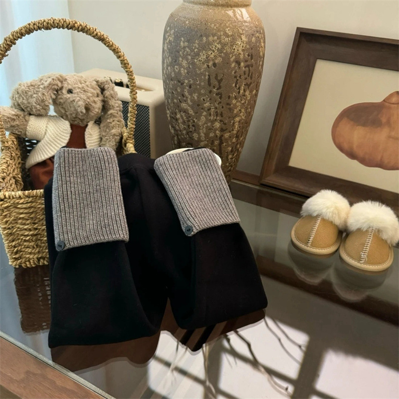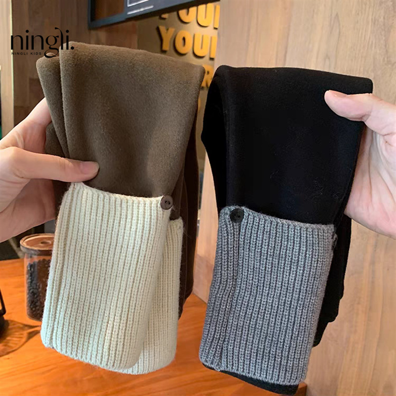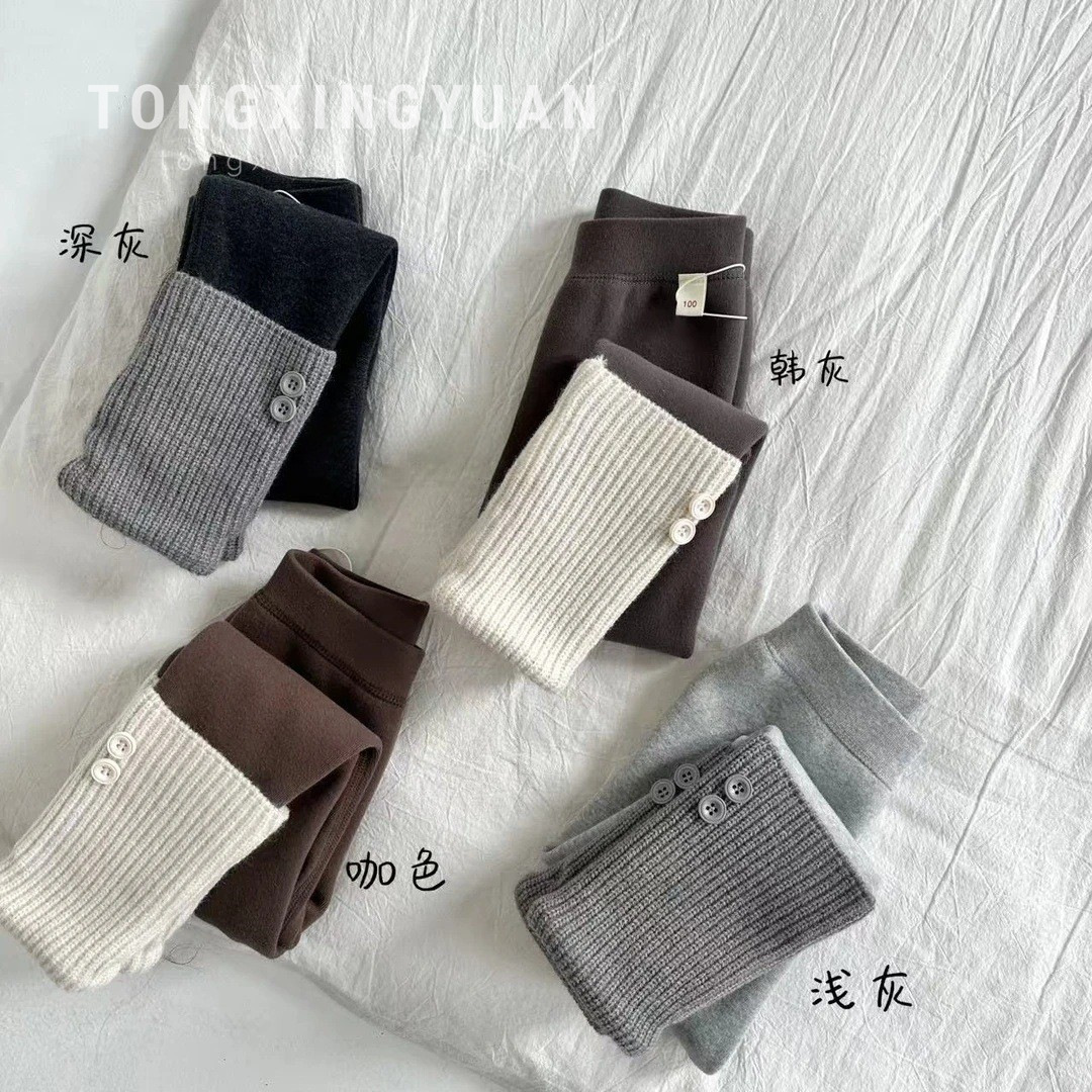 童星圆跨境儿童韩版百搭加绒拼接两粒扣打底裤冬款加绒加厚休闲裤