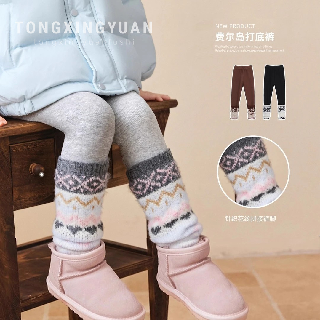 跨境女童装宝宝费尔岛打底裤女加绒冬季2025女童超好看保暖裤跨境