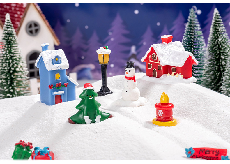 微景観クリスマス置物雪だるま街灯クリスマスツリープレゼント別荘家樹脂置物雪景色アクセサリー