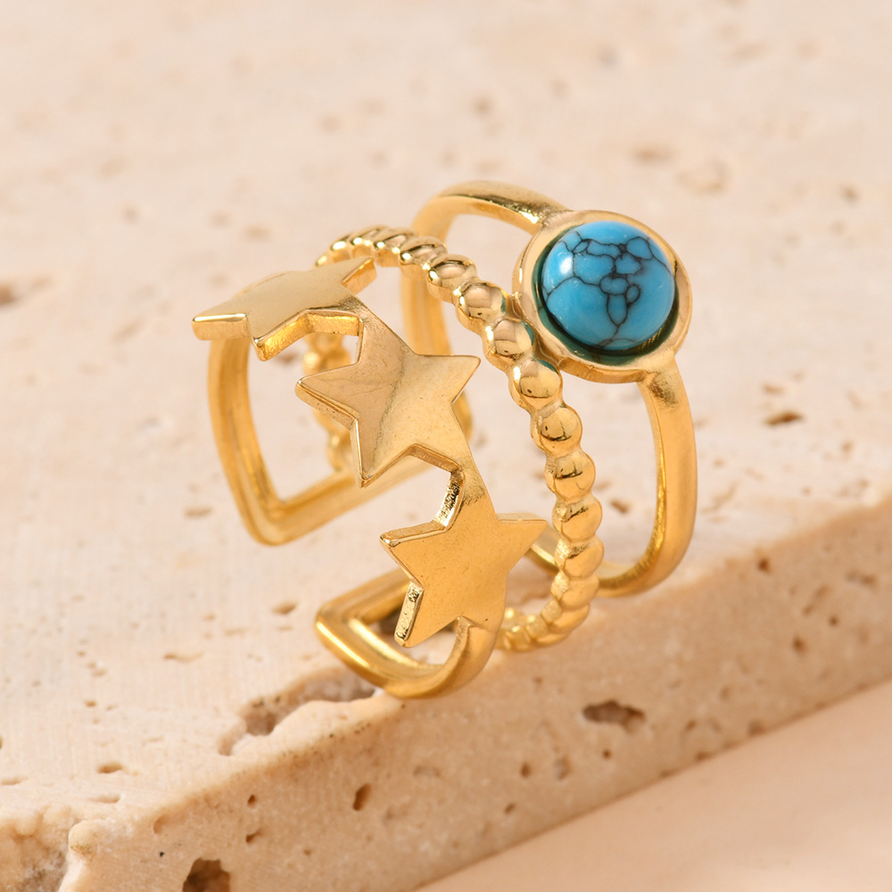 国境を越えたレトロなボヘミアンチタン鋼の指輪の女性の贅沢な高級感油圧ブルー松石の開口指輪のアクセサリー