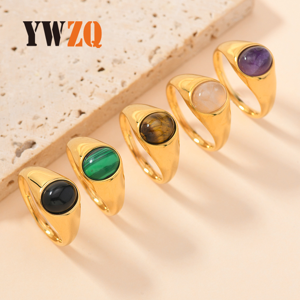 欧米風天然石ステンレス指輪軽豪華設計油圧楕円宝石開口戒ファッション