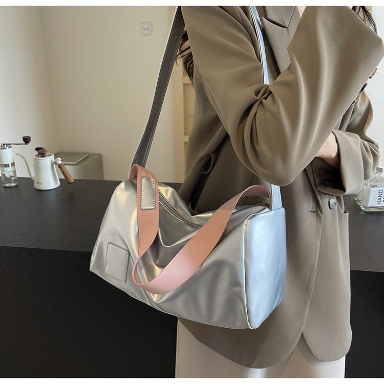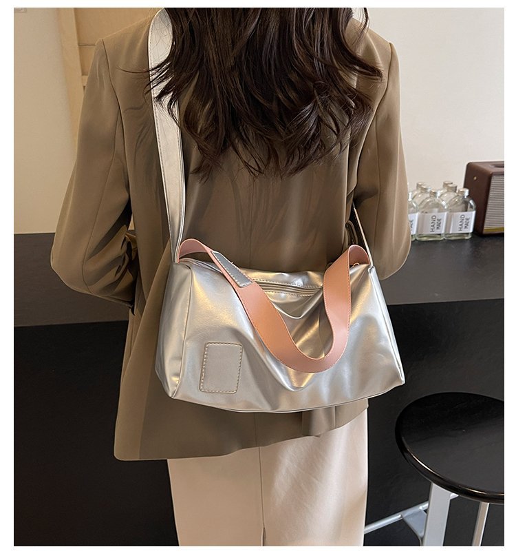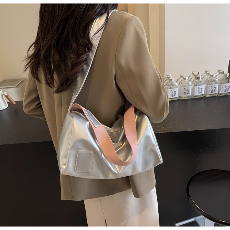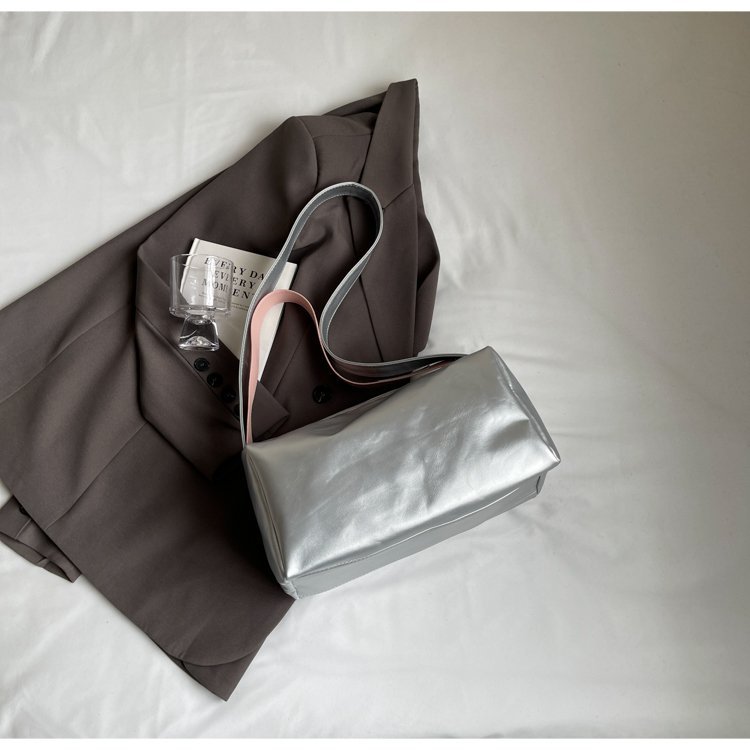 新商品純色高颜値シングルショルダーバッグ2024ファッションカジュアルショルダーバッグシンプル通勤高颜値トートバッグ