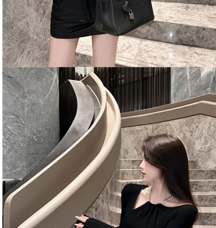 2024新型露肩一字襟偽長袖tシャツ早秋金修身痩せギャル小衆上着ins