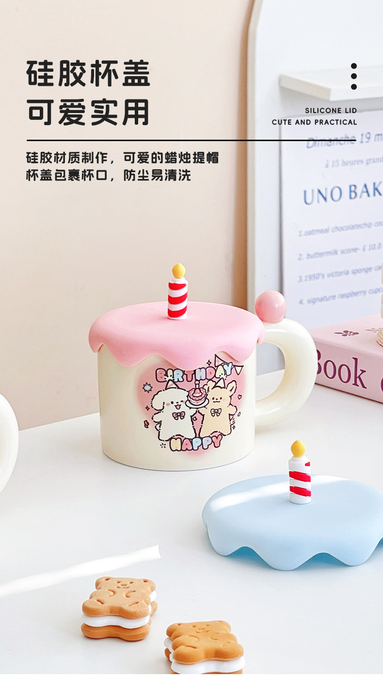 ラインケーキ子犬マグカップ漫画誕生日プレゼントカップ蓋付きカップルカップ大容量女子陶磁器カップ